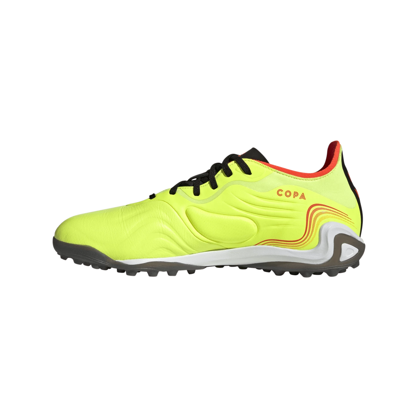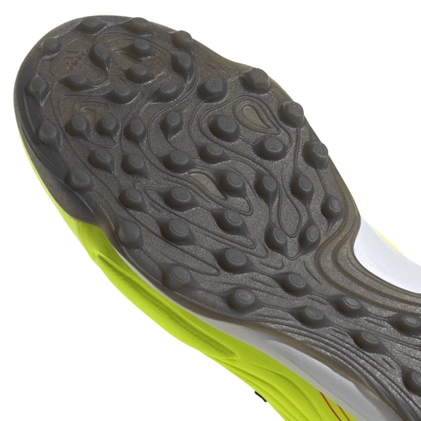 In the chaos of the cage, the lightest touch leaves a lasting impression. Fine-tune your football senses in adidas Copa. These artificial turf boots include a soft leather forefoot and shock-absorbing Touchpods that combine for silky, assured touches. Sitting on the lugged rubber outsole, an EVA midsole cushions every stride to keep you comfortable and your play a class apart.