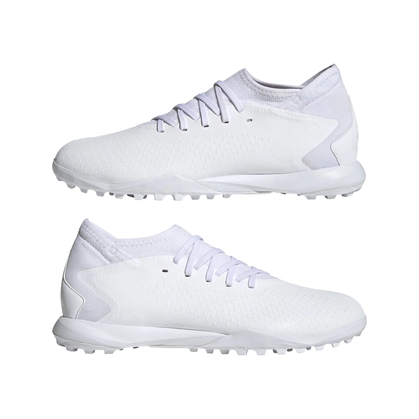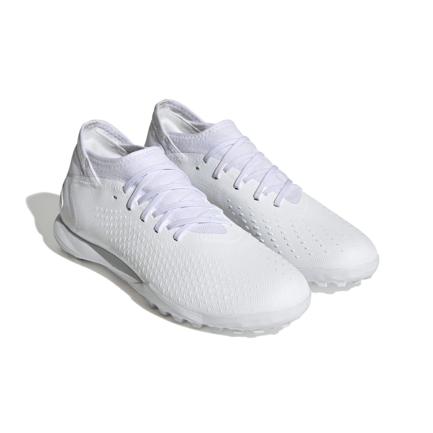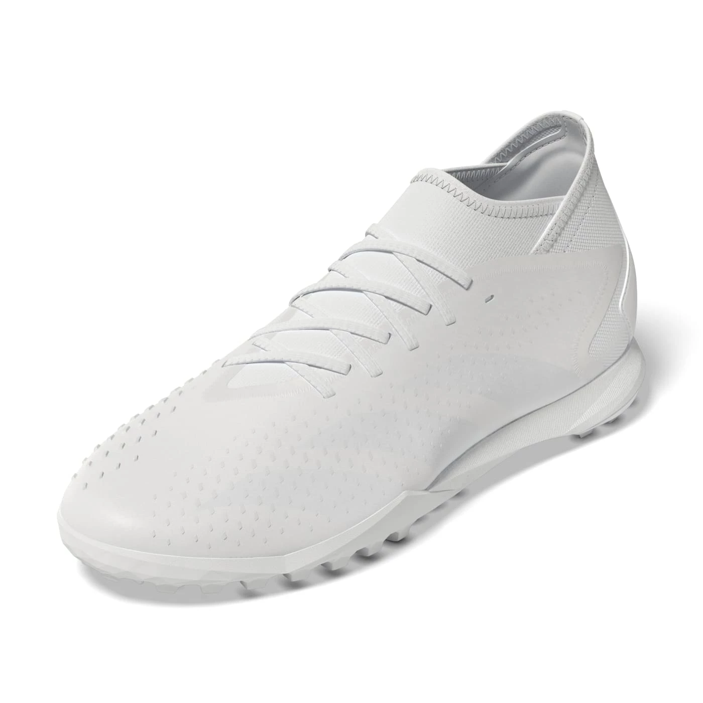Control + accuracy = confidence. When the goal’s in your sights, target perfection with adidas Predator Accuracy. The coated textile upper on these football boots includes High Definition Texture across its strike zone. A mixture of debossed elements and raised print, it’s there to help you nail every pass and shot. Underneath, a lug rubber outsole keeps you in boss mode on artificial turf.