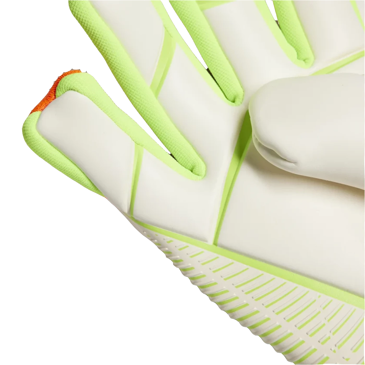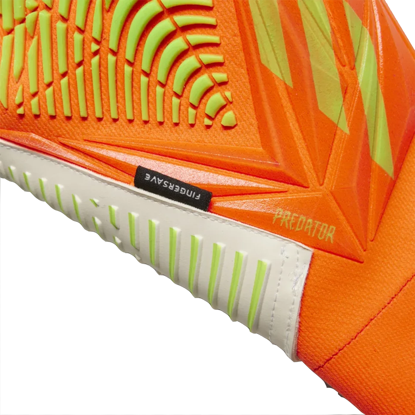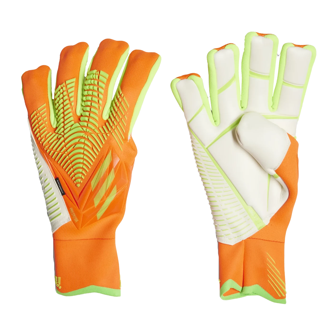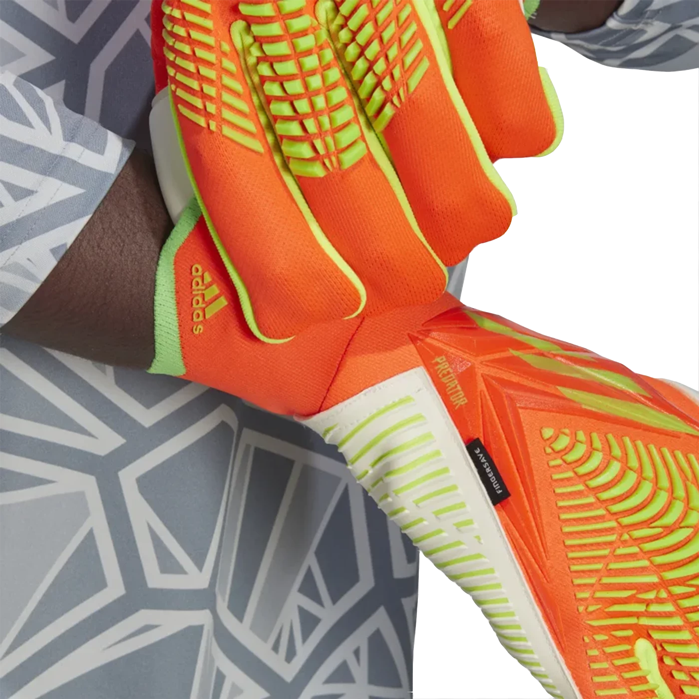 Discover a brand-new side to your game. These adidas Predator Edge goalkeeper gloves have a silicone Zone Skin backhand coating for heightened control when clearing the ball and finger supports for confident catching and throwing. The URG 2.0 palm offers extended grip and cushioning. A strapless, compressive entry keeps the fit feeling natural for no-distraction keeping.