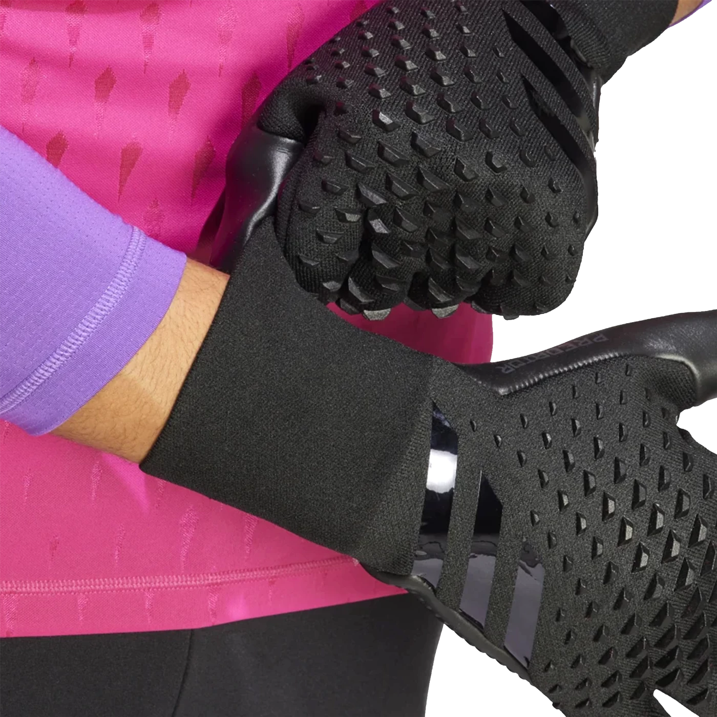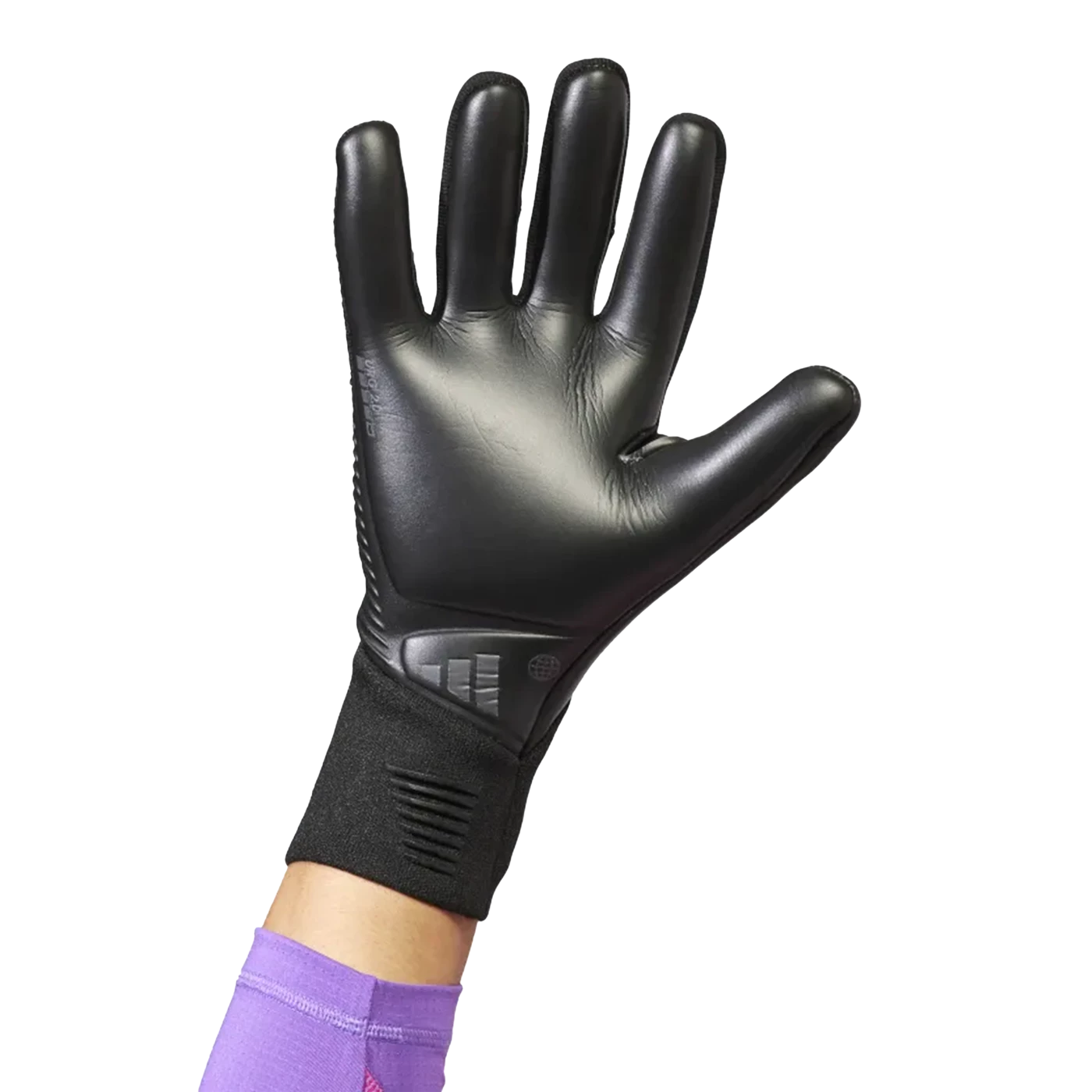 Maximum precision and absolute ball control with these adidas Predator strapless goalkeeper gloves. High Definition Grip silicone elements on the knit upper hand ensure accuracy without sacrificing flexibility. The URG 2.0 palm features a grip band on the thumbs and an anti-abrasion zone that provides robust protection from the wear and tear caused by diving. At least 50% of this product is made from a mix of recycled and renewable materials.