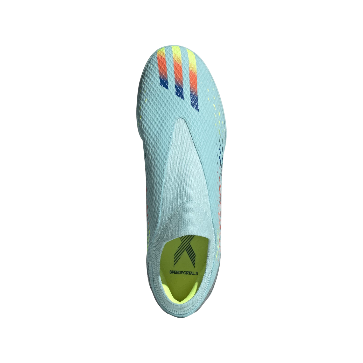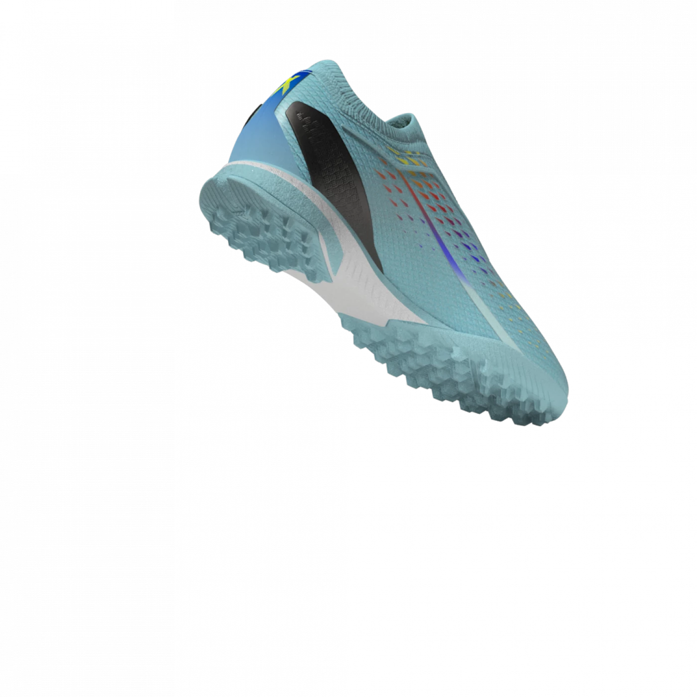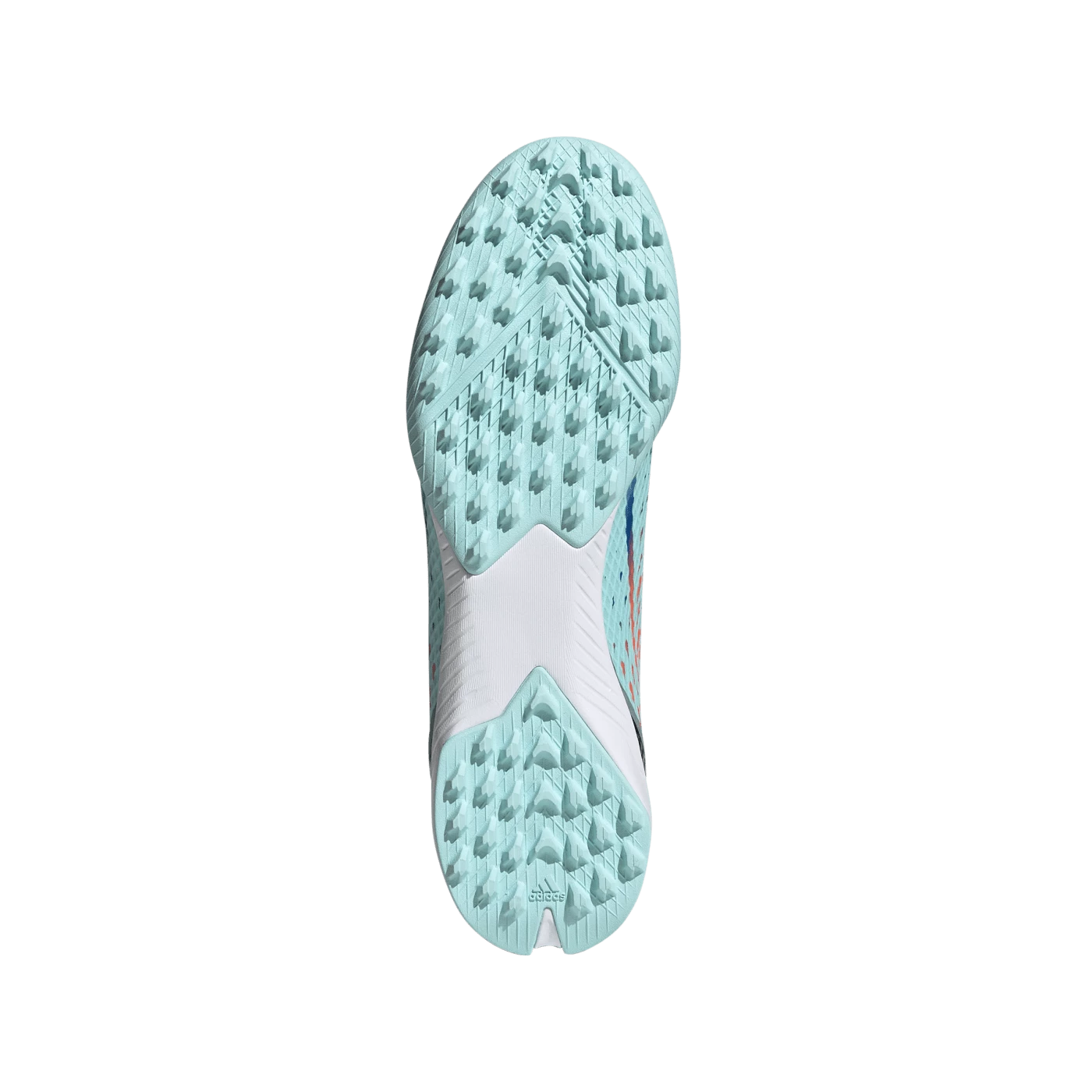 Time and space. It’s all relative when you play in a different dimension. Open the gateway to multidimensional speed in adidas X Speedportal. The lug rubber outsole on these football boots keeps you quick on artificial turf while an EVA midsole cushions every step. Up top, the soft, coated textile upper includes a supportive flat-knit collar and rigid TPU external heel lock to keep you strapped in for blink-quick skills.