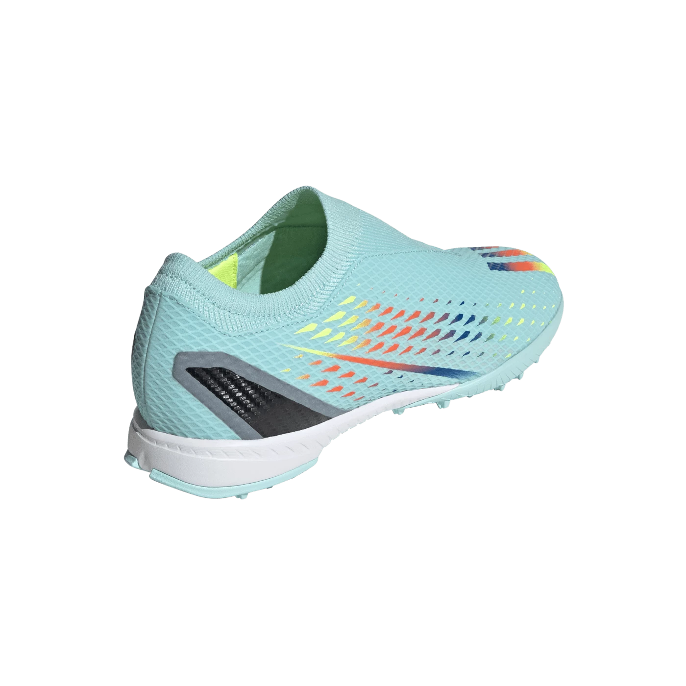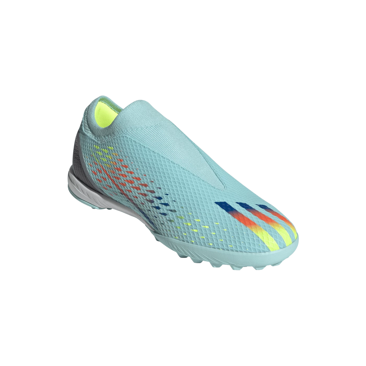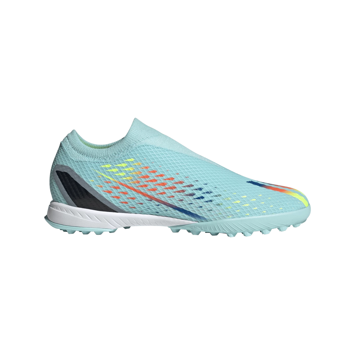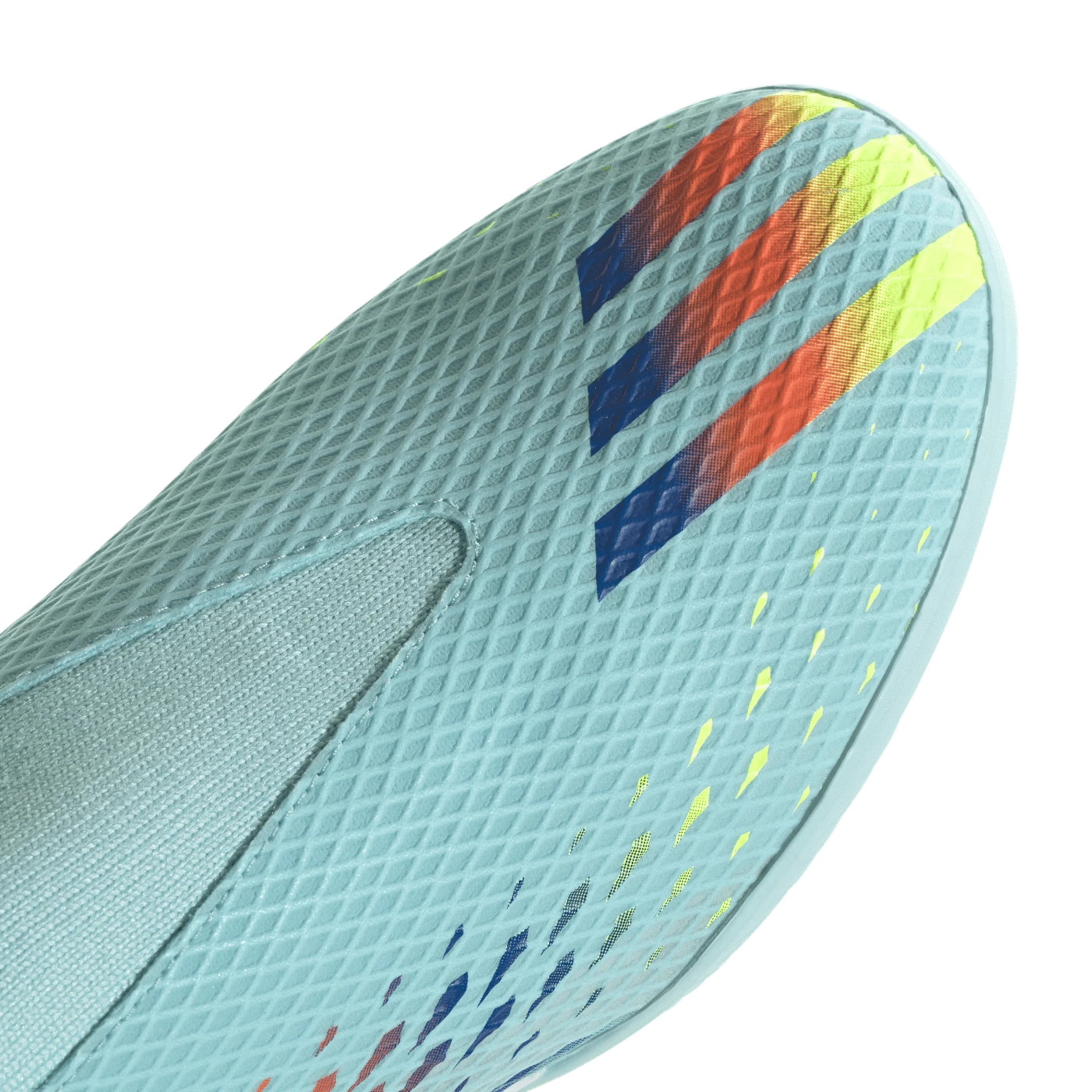 Time and space. It’s all relative when you play in a different dimension. Open the gateway to multidimensional speed in adidas X Speedportal. The lug rubber outsole on these football boots keeps you quick on artificial turf while an EVA midsole cushions every step. Up top, the soft, coated textile upper includes a supportive flat-knit collar and rigid TPU external heel lock to keep you strapped in for blink-quick skills.