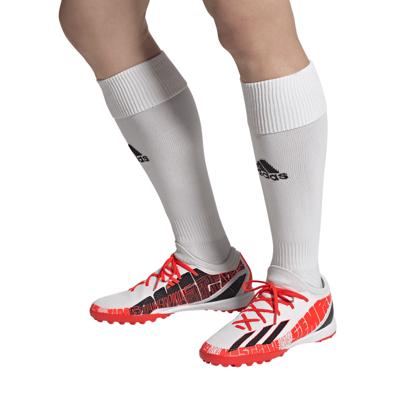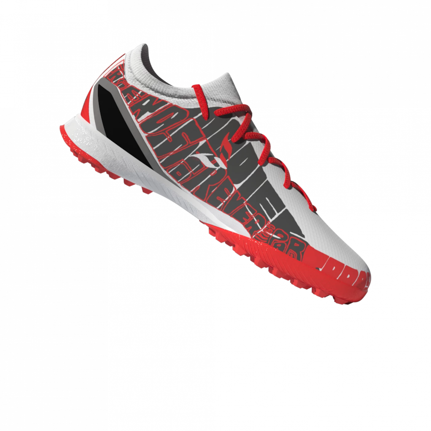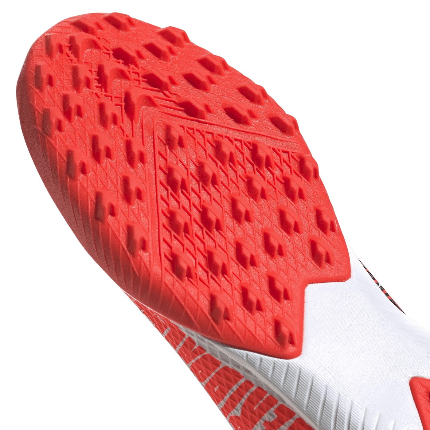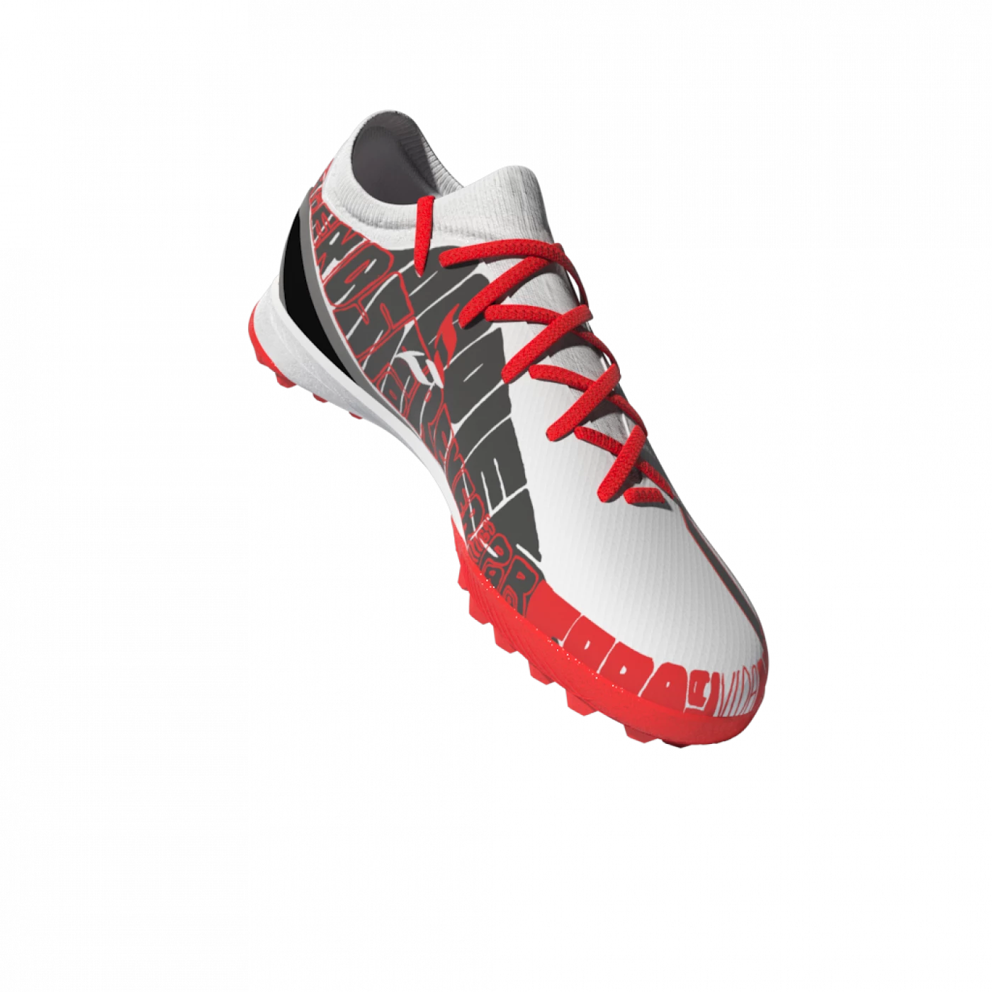 Time and space. It’s all relative when you play in a different dimension. Open the gateway to multidimensional speed in adidas X Speedportal. The lug rubber outsole on these football boots keeps you quick on artificial turf while an EVA midsole cushions every step. Up top, the soft, coated textile upper includes a supportive flat-knit collar and rigid TPU external heel lock to keep you strapped in for blink-quick skills. Bold graphics highlight Lionel Messi’s lifelong love affair with the ball.