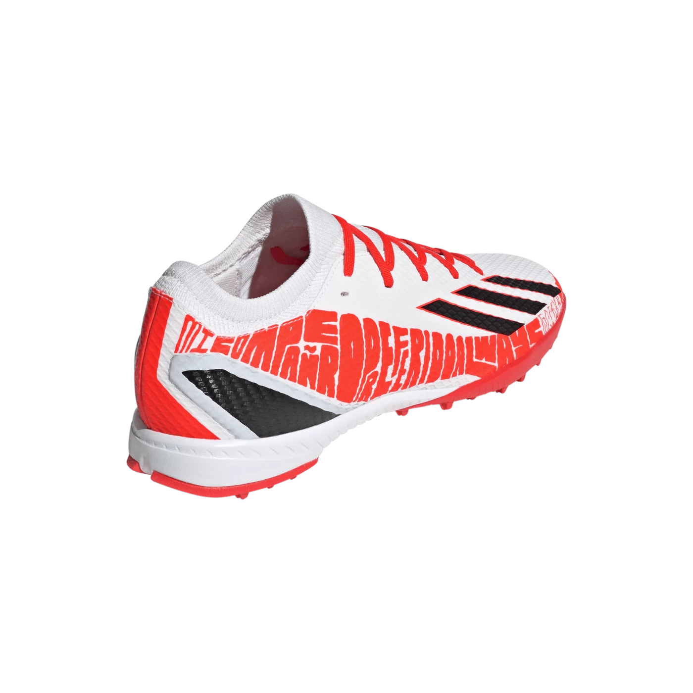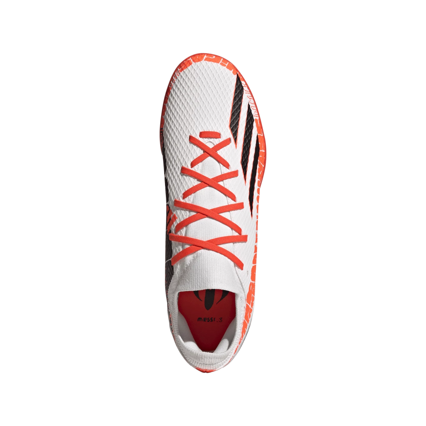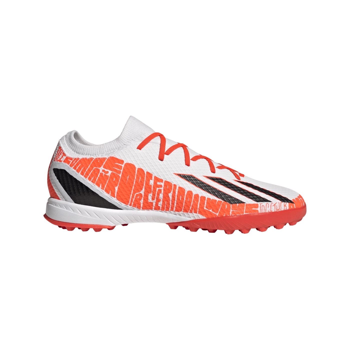 Time and space. It’s all relative when you play in a different dimension. Open the gateway to multidimensional speed in adidas X Speedportal. The lug rubber outsole on these football boots keeps you quick on artificial turf while an EVA midsole cushions every step. Up top, the soft, coated textile upper includes a supportive flat-knit collar and rigid TPU external heel lock to keep you strapped in for blink-quick skills. Bold graphics highlight Lionel Messi’s lifelong love affair with the ball.