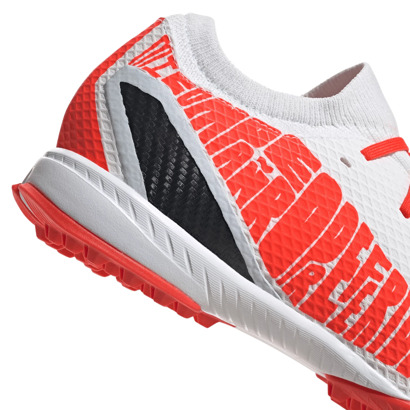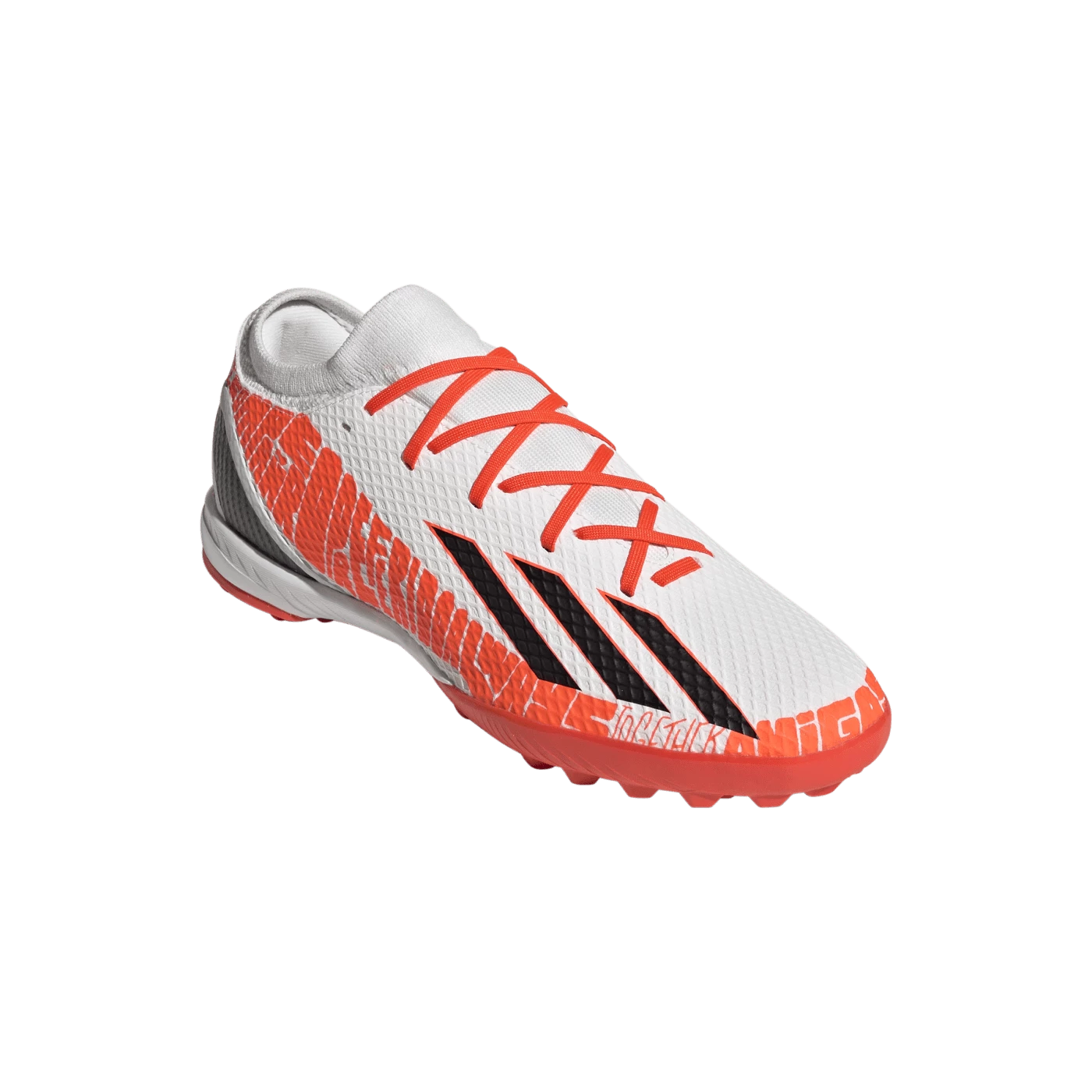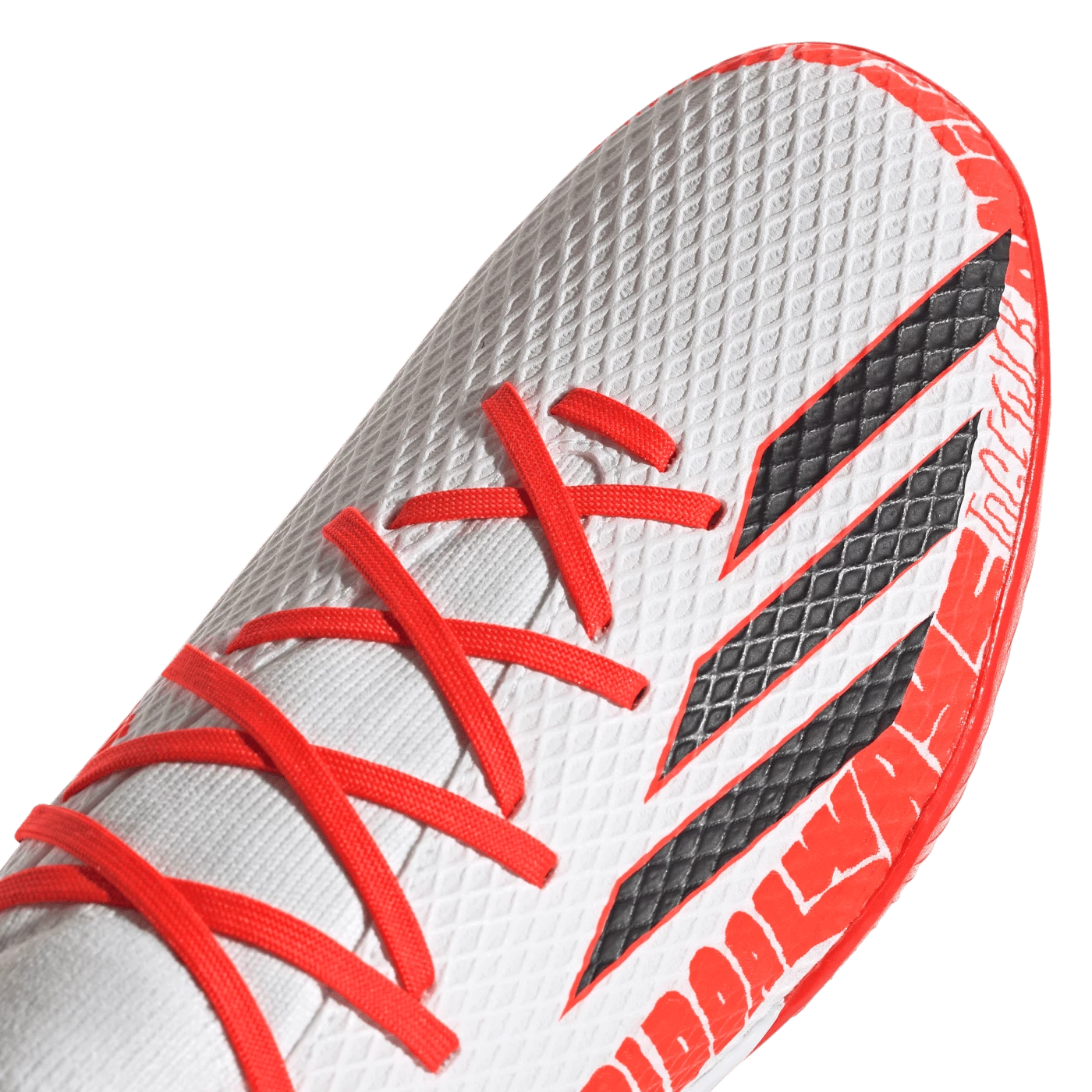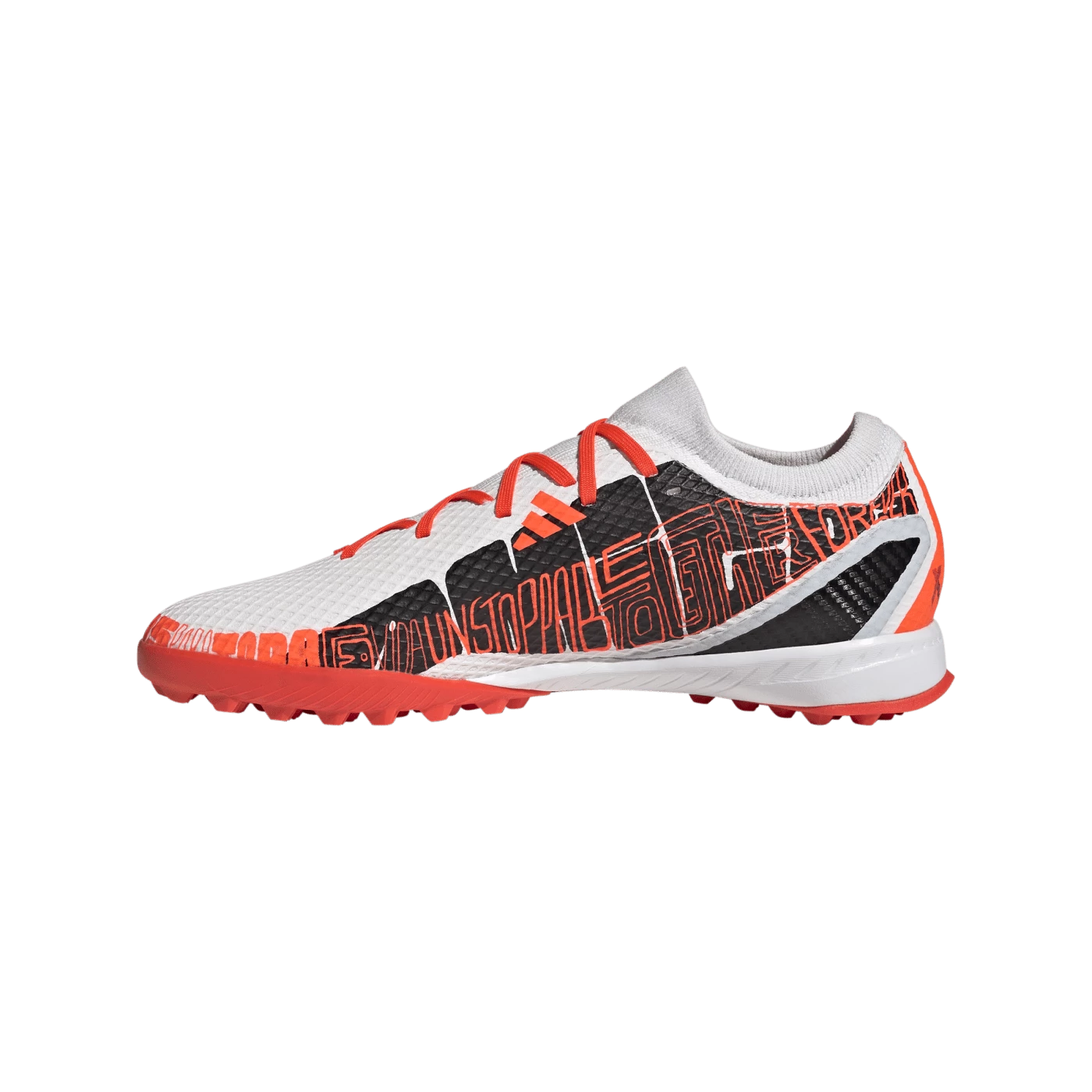 Time and space. It’s all relative when you play in a different dimension. Open the gateway to multidimensional speed in adidas X Speedportal. The lug rubber outsole on these football boots keeps you quick on artificial turf while an EVA midsole cushions every step. Up top, the soft, coated textile upper includes a supportive flat-knit collar and rigid TPU external heel lock to keep you strapped in for blink-quick skills. Bold graphics highlight Lionel Messi’s lifelong love affair with the ball.