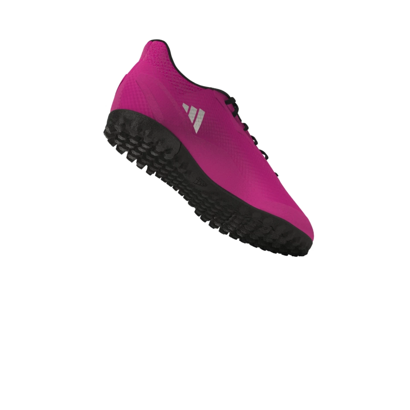 Time and space. It’s all relative when you play in a different dimension. Open the gateway to multidimensional speed in adidas X Speedportal. The lug rubber outsole on these football boots keeps you quick on artificial turf while an EVA midsole cushions every step. Up top, the soft, coated textile upper includes a supportive flat-knit collar and rigid TPU external heel lock to keep you strapped in for blink-quick skills.