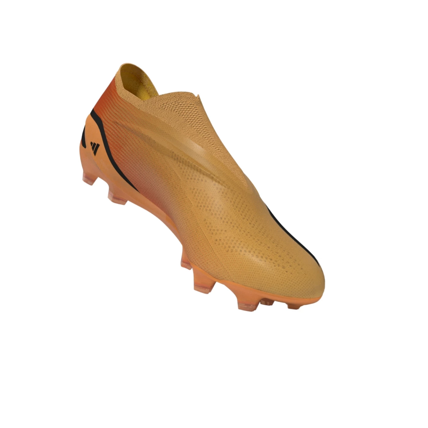 Mind. Body. Boot. Connected in the blink of an eye. Pull on adidas X Speedportal to unlock speed in all its dimensions. Lightweight and foot-hugging, the Speedskin upper on these laceless football boots has a stretchy adidas PRIMEKNIT collar, carbon heel lock and stability fins for a secure fit at high speeds. Two extra forefoot studs on the Speedframe outsole help boost your acceleration on firm ground.