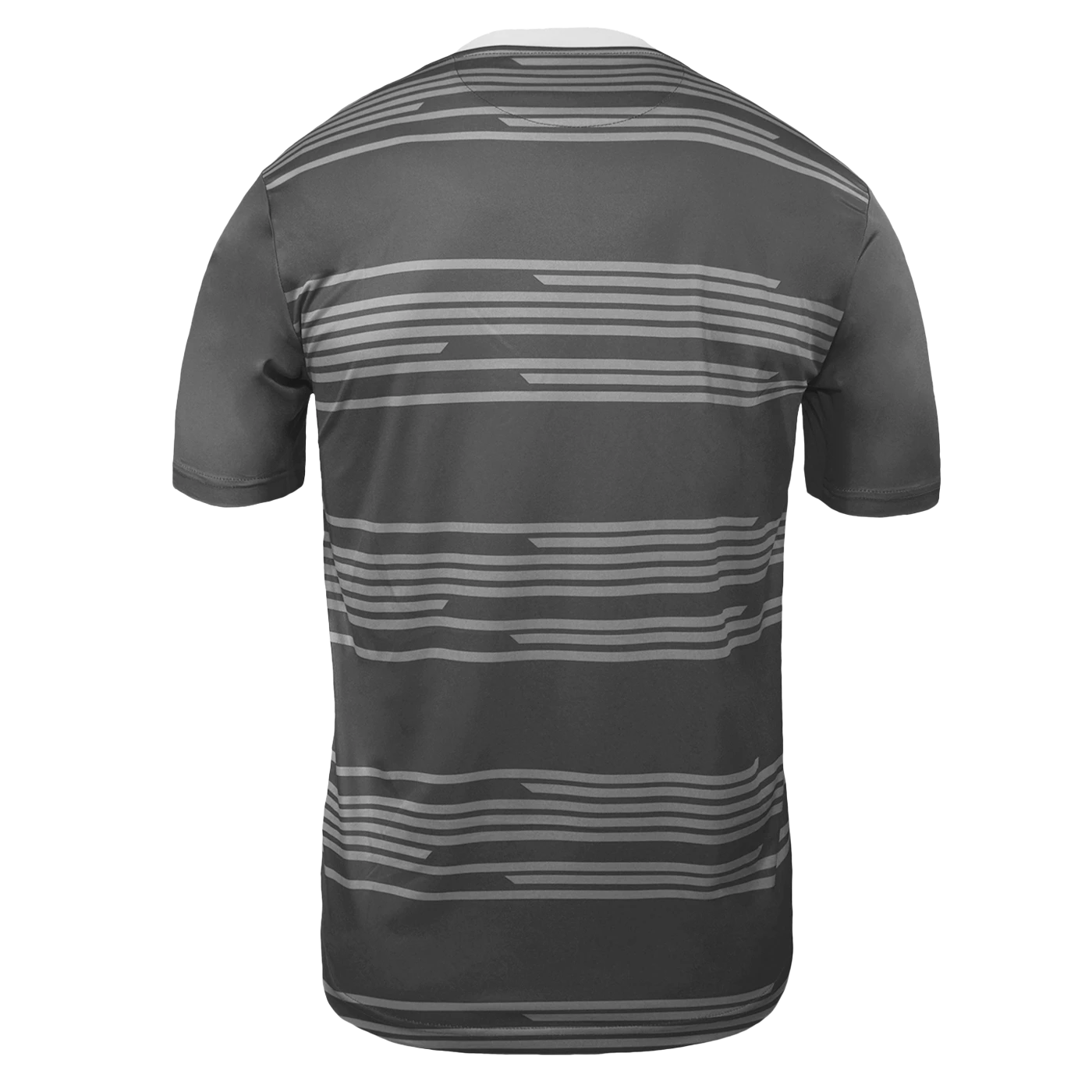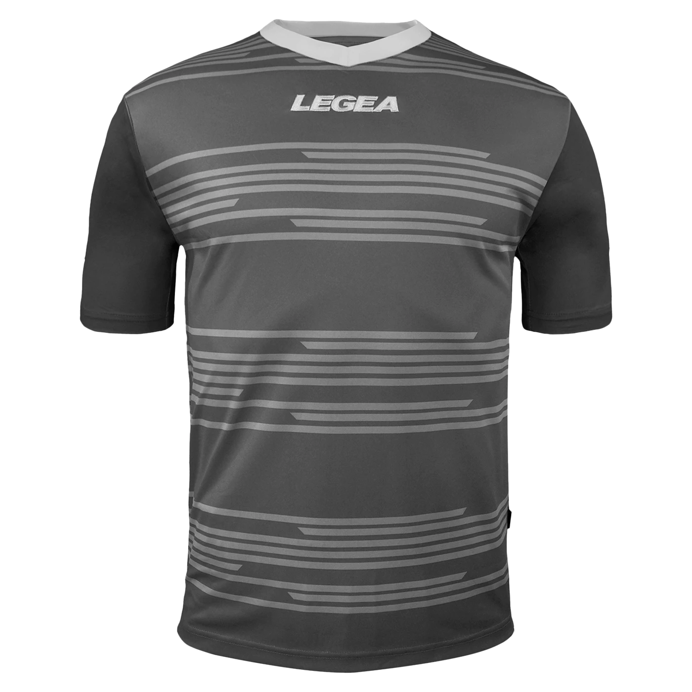 Legea jersey model Ankara dark gray with orizontal lines and V neck.