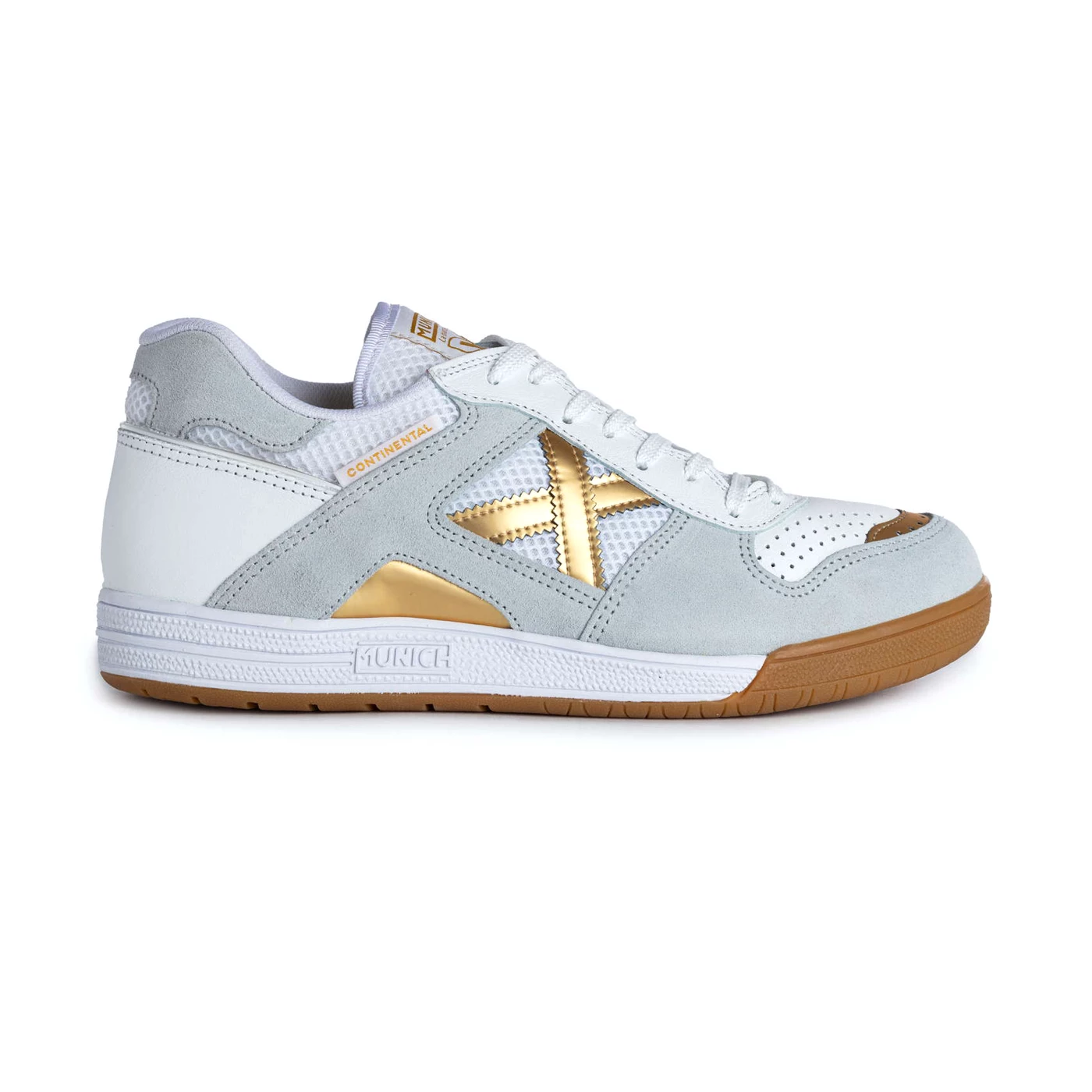 A legend of indoor football reinvented and ready to conquer any court. The Continental is one of the most used models by professional futsal players all over the world. This model is made of kangaroo leather, lined with Cambrele fabric and foam on the inside with both natural and metallic finishes. It incorporates a thermoplastic counter made of recycled materials and fibres which allows a perfect grip on the foot. This model endures over time and in the legacy of the X brand.