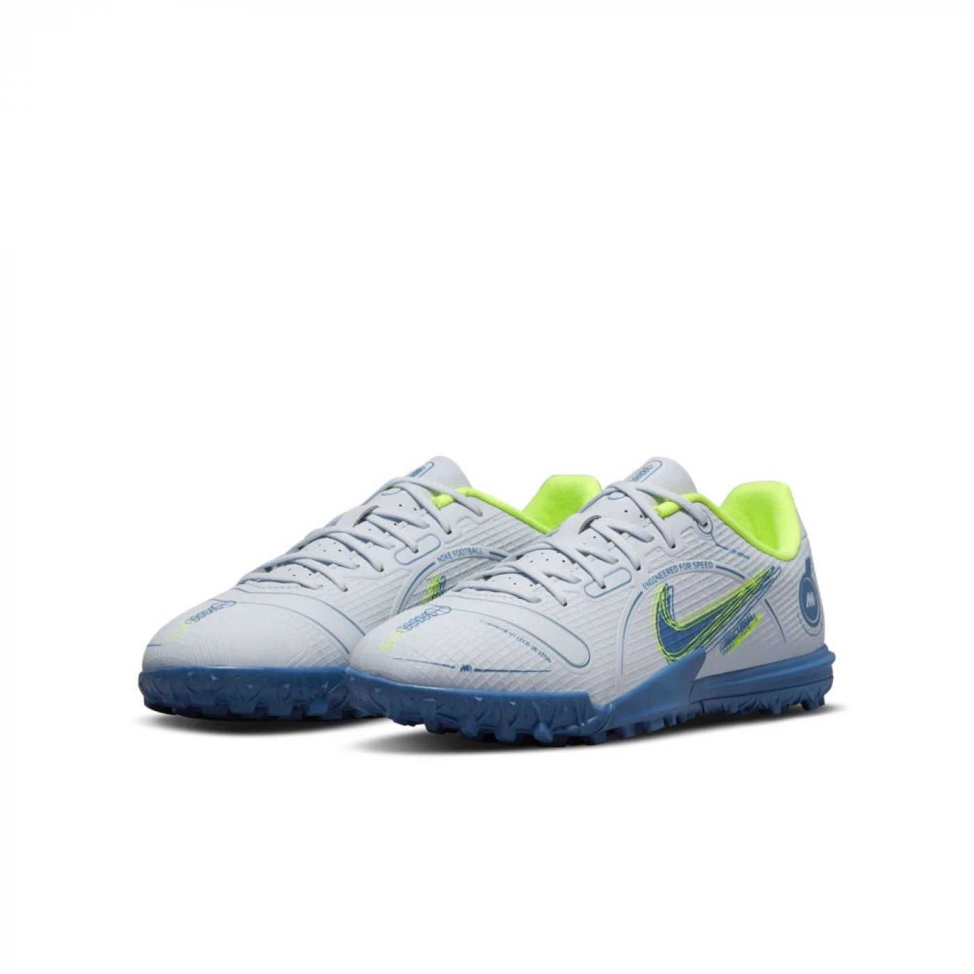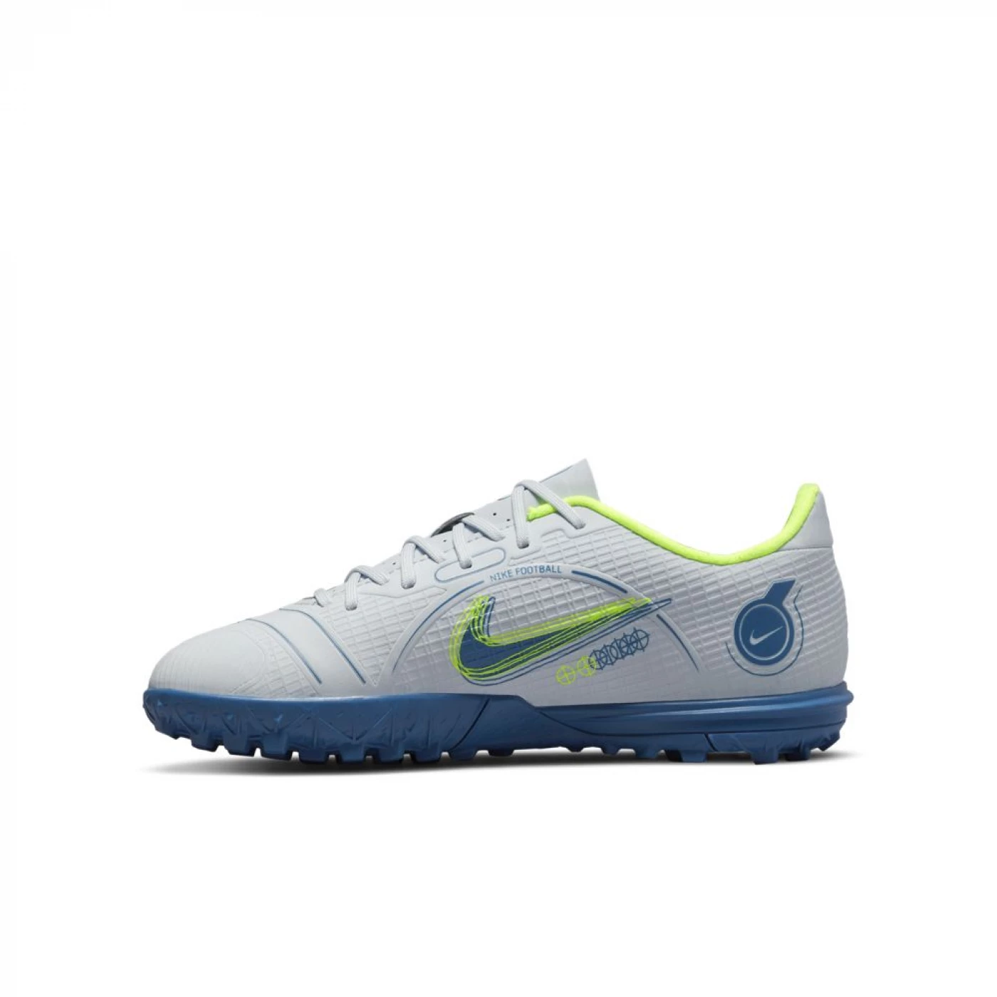 DESIGNED FOR SPEED.Unleash your speed with the Nike Jr. Mercurial Vapor 14 Academy TF. Color blocks on the sides and forefoot highlight strategic areas for precise dribbling, passing and shooting. Plus, we’ve added a snug texture to the upper for total match control.Exceptional touchThe synthetic and molded upper features a textured pattern for better ball control.Designed for movementThe rubber tread is designed for exceptional traction on outdoor and indoor surfaces.Perfect fitComfortable lining wraps the foot for a natural, snug fit.- Ideal on shorter synthetic surfaces- Cushioned inner sole