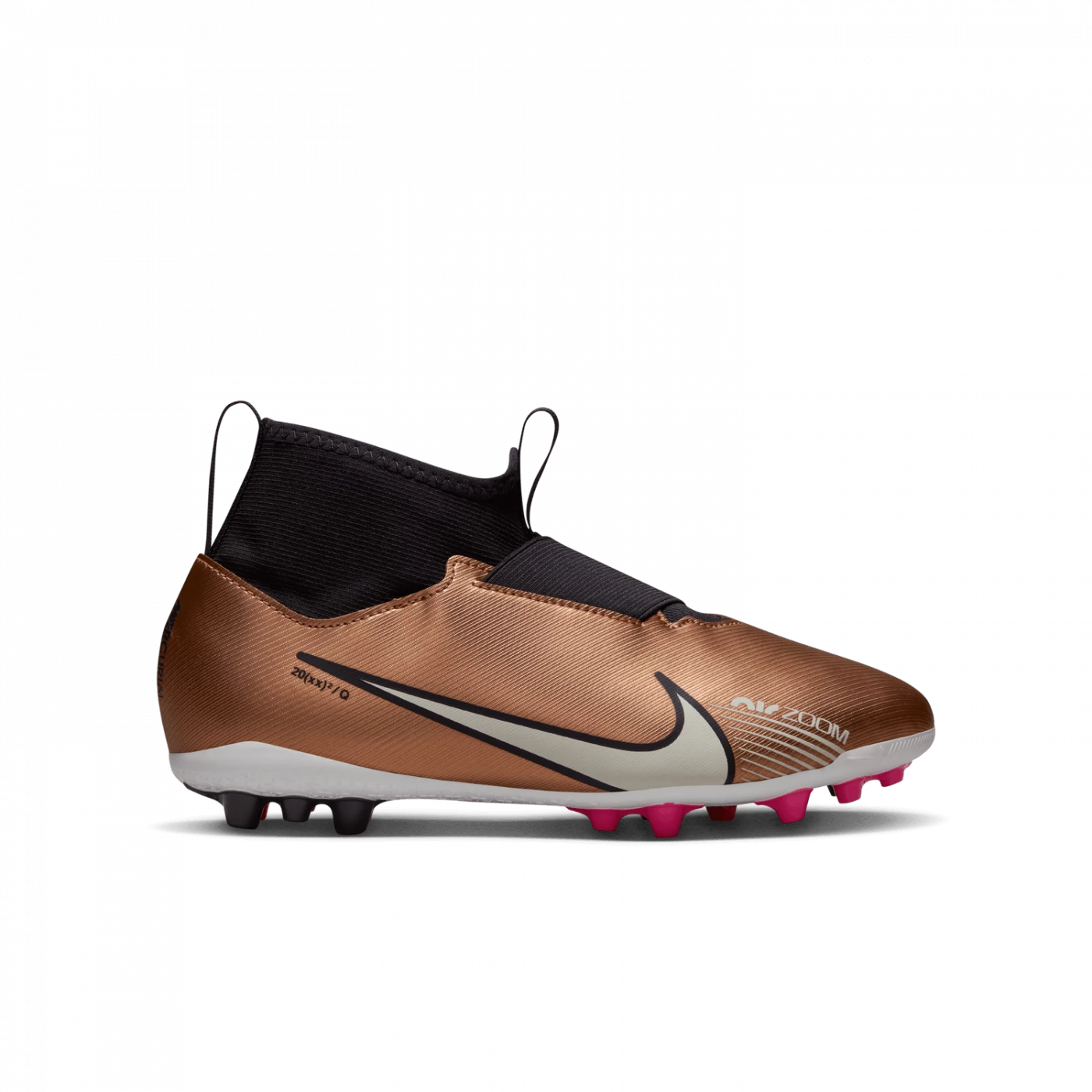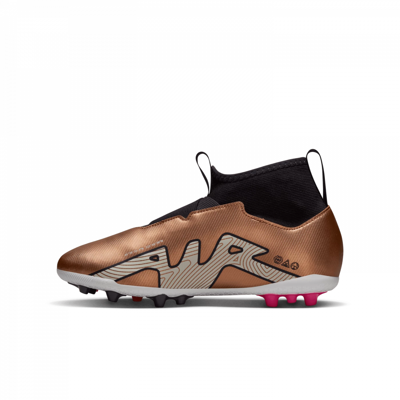 Celebrate the world’s biggest soccer tournament with a design that references the science of connection and gravity inspired by the event. The unique carbon fiber chrome plate completes a stunning futuristic look designed for the feet of the world’s greatest footballers. Slip them on quickly (forget the laces!), they’re perfect for taking to the court right away. Our first Zoom Air unit made for football brings extra comfort and bounce to these shoes for artificial turf pitches and is ideal for training, friendlies and match day.