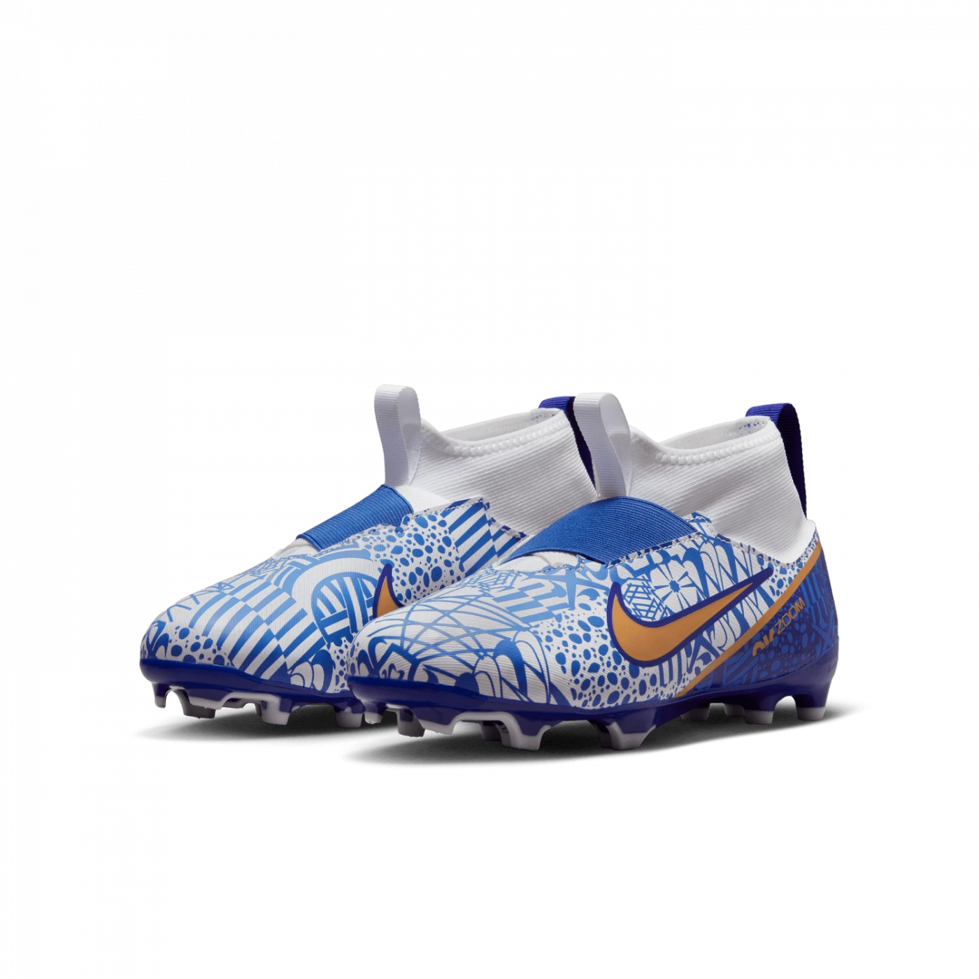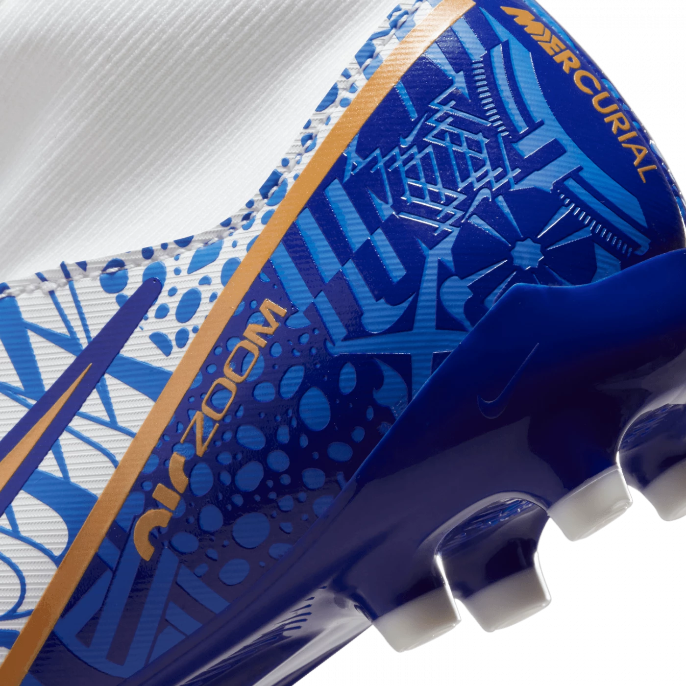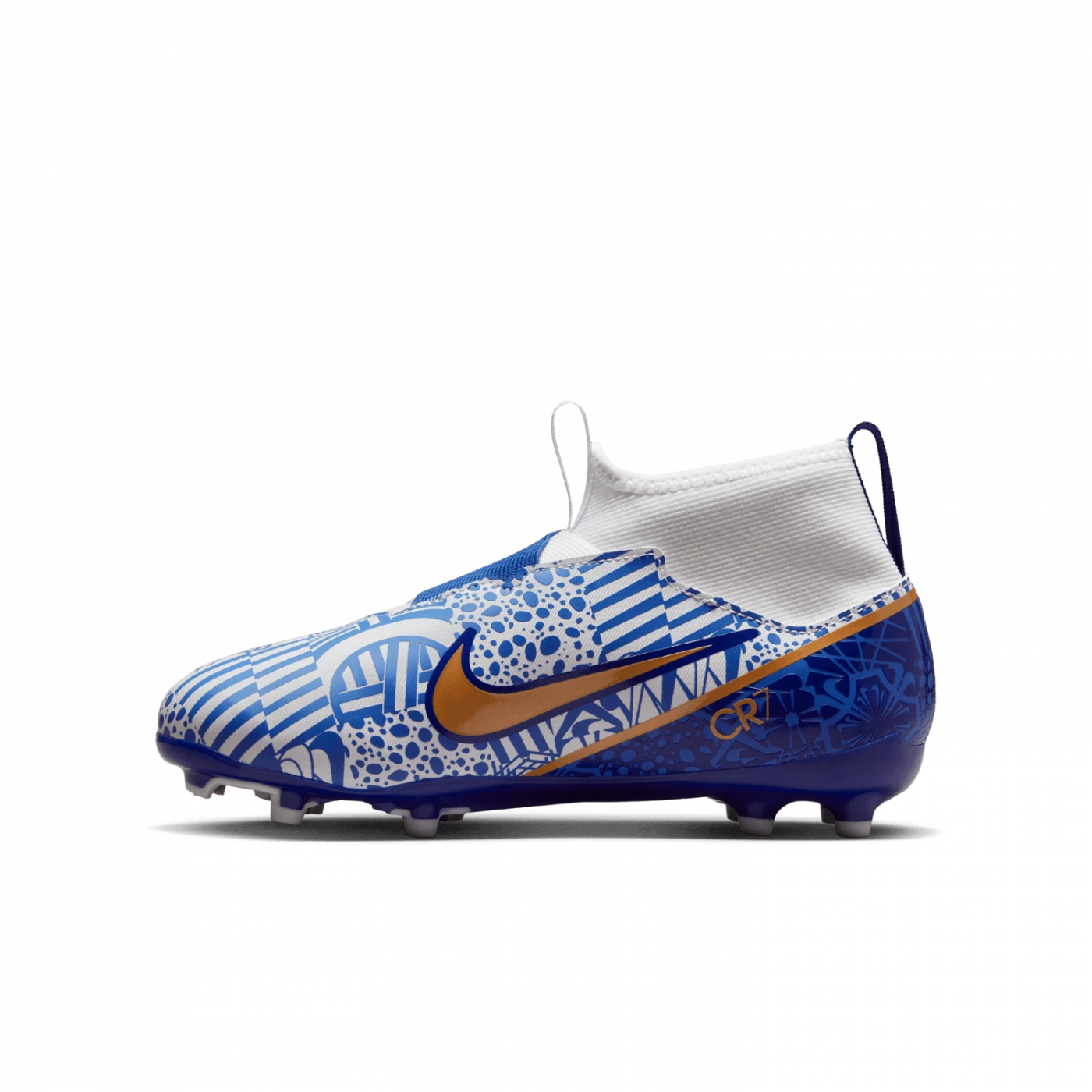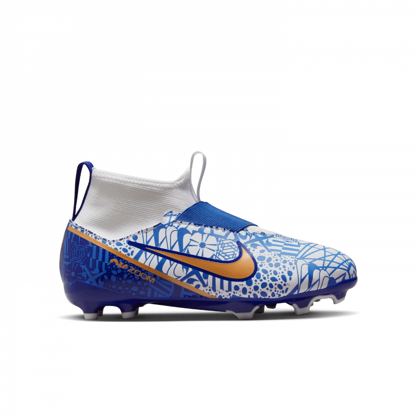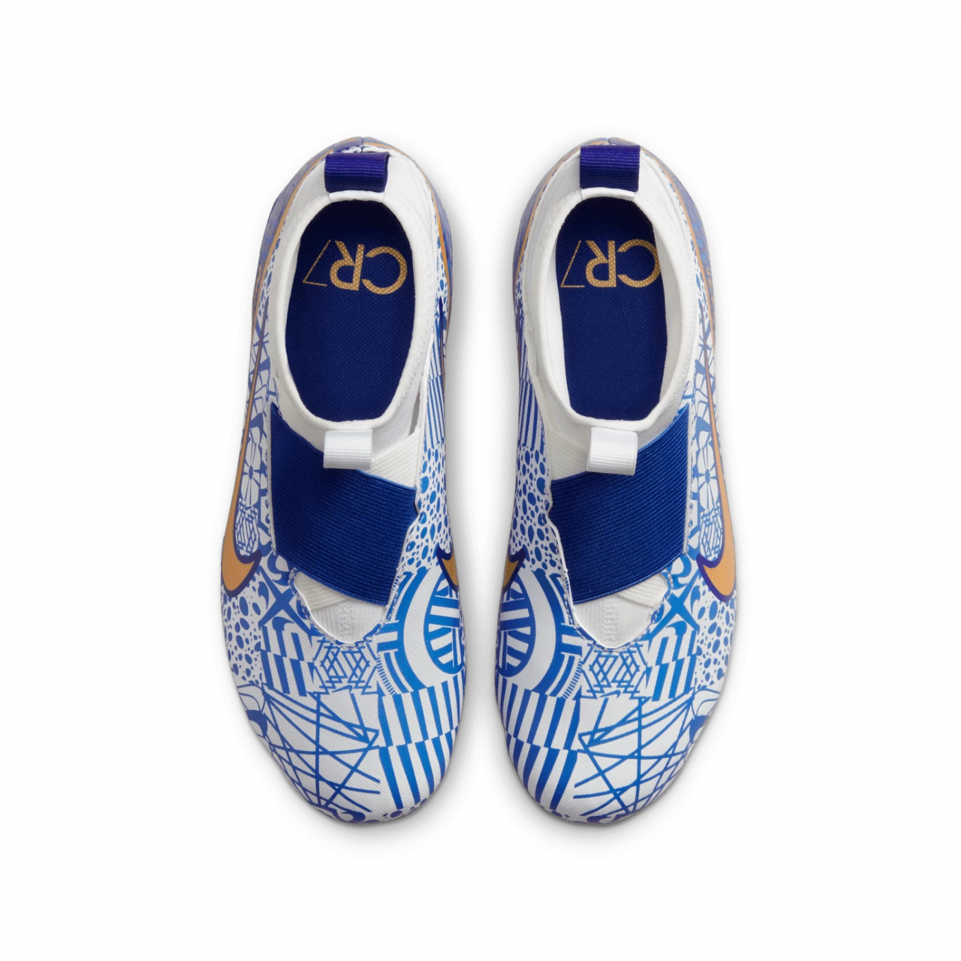 Like CR7, azulejos are a Portuguese treasure. We took visual inspiration from the warm, ocean tones of these tiles and integrated them into our fastest, CR7-approved, laceless Nike Jr. shoe for a slip-on fit. Made for the tallest artificial grass, it offers traction that is ideal for quick movement and running on the court. From practice to match day, the durable design will accompany you from start to finish and allow you to demonstrate all your skills.