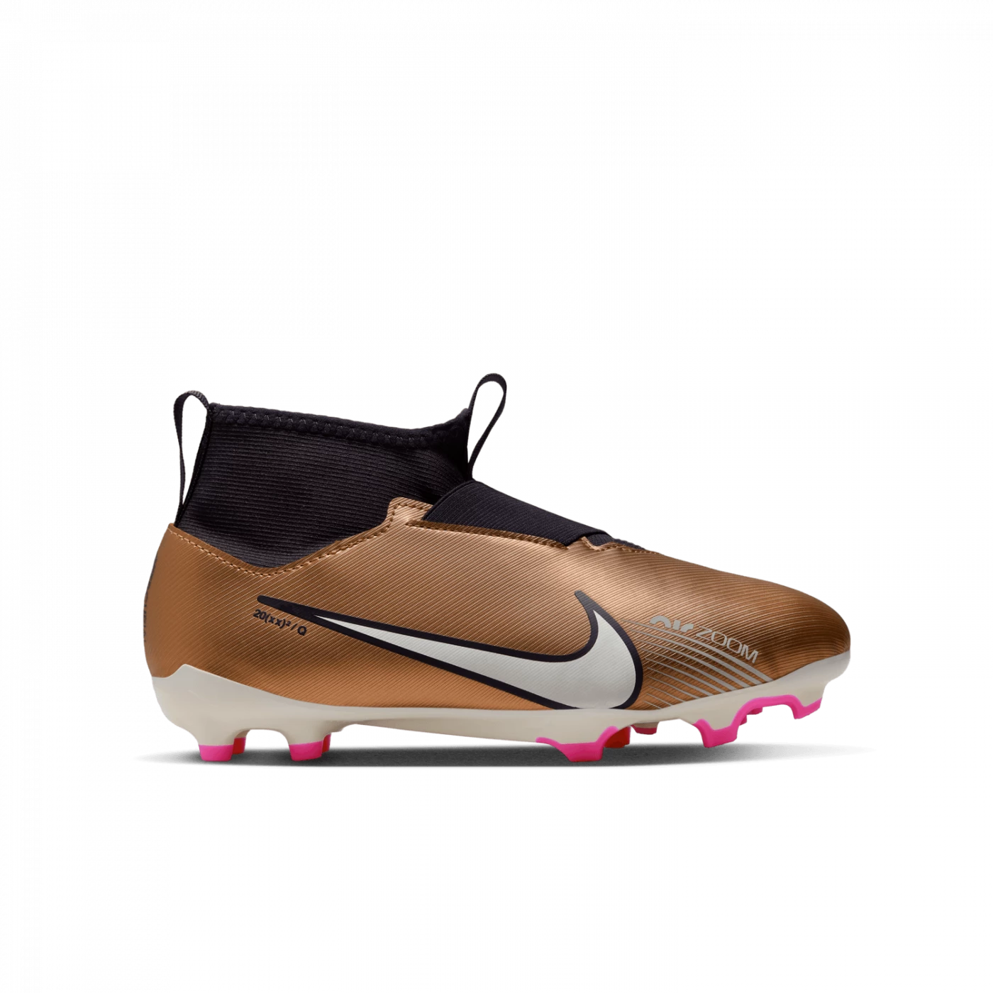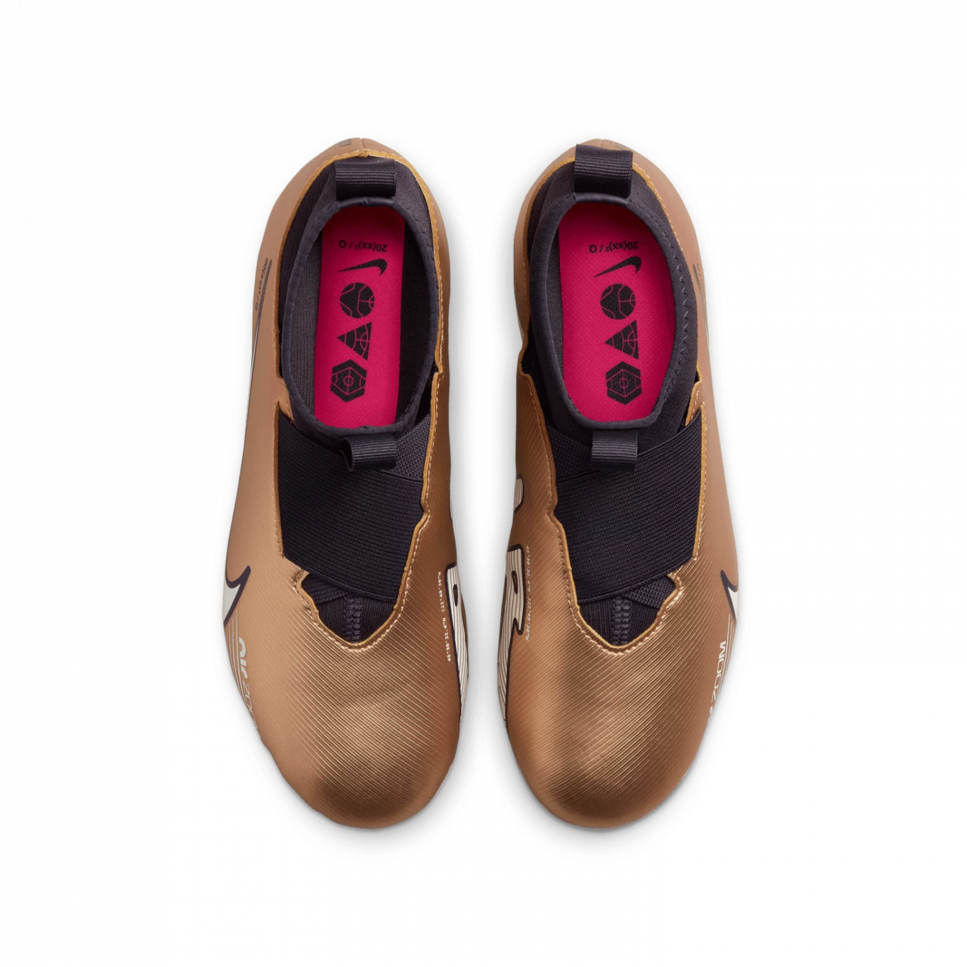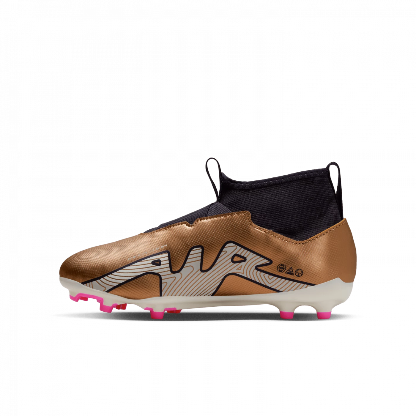 Celebrate the world’s biggest soccer tournament with a design that references the science of connection and gravity inspired by the event. The unique carbon fiber chrome plate completes a stunning futuristic look designed for the feet of the world’s greatest footballers. Slip these Nike Jr. football boots on quickly – they have no laces! And there’s more: our first Zoom Air unit made for football offers extra comfort and elasticity on a wide range of pitches, from real grass to artificial turf. Take the field!