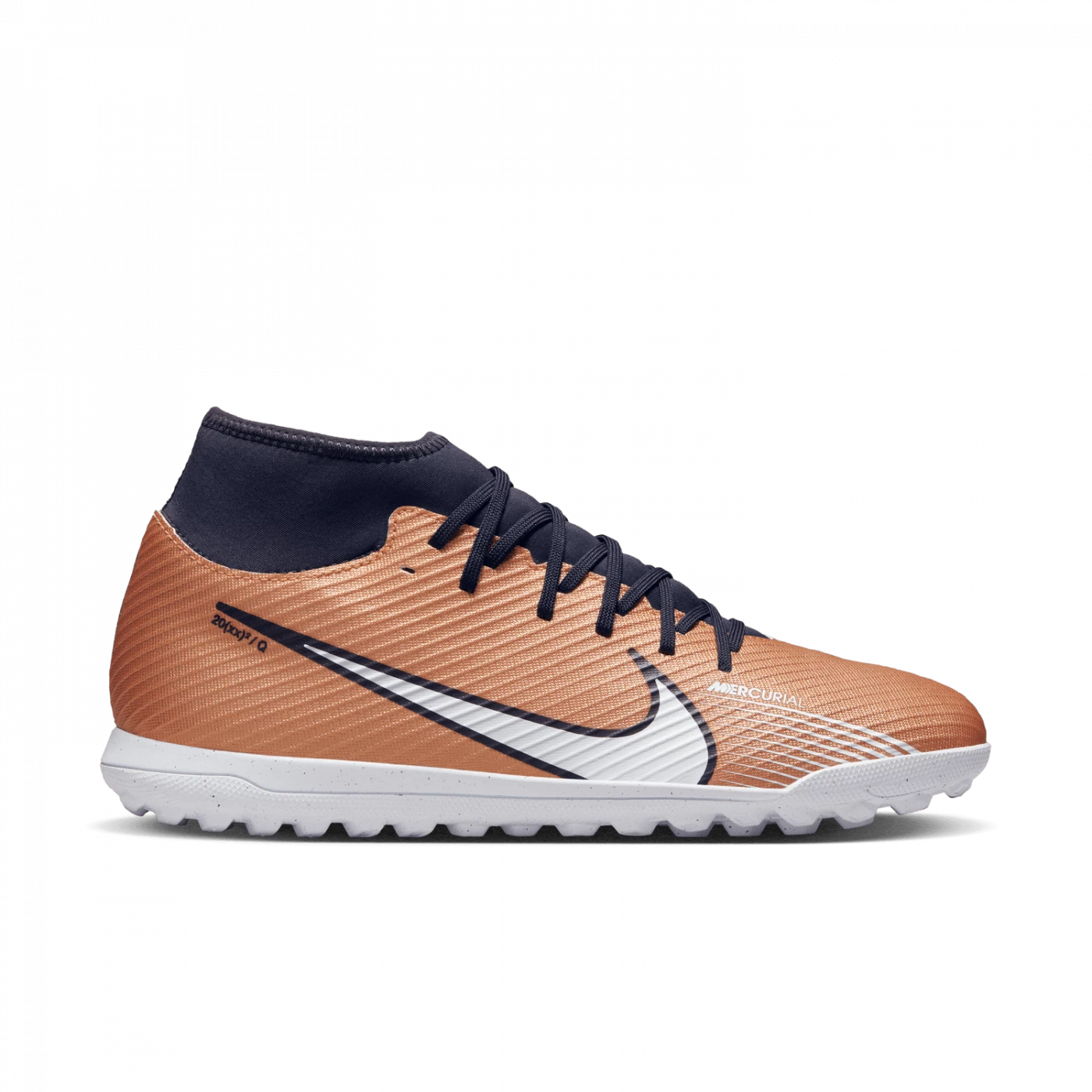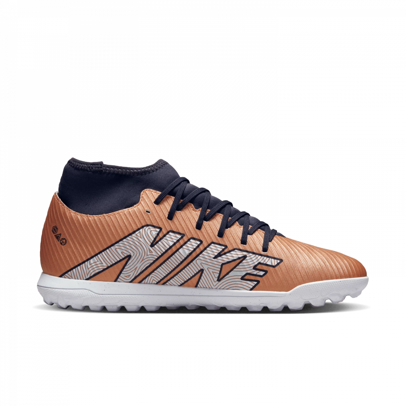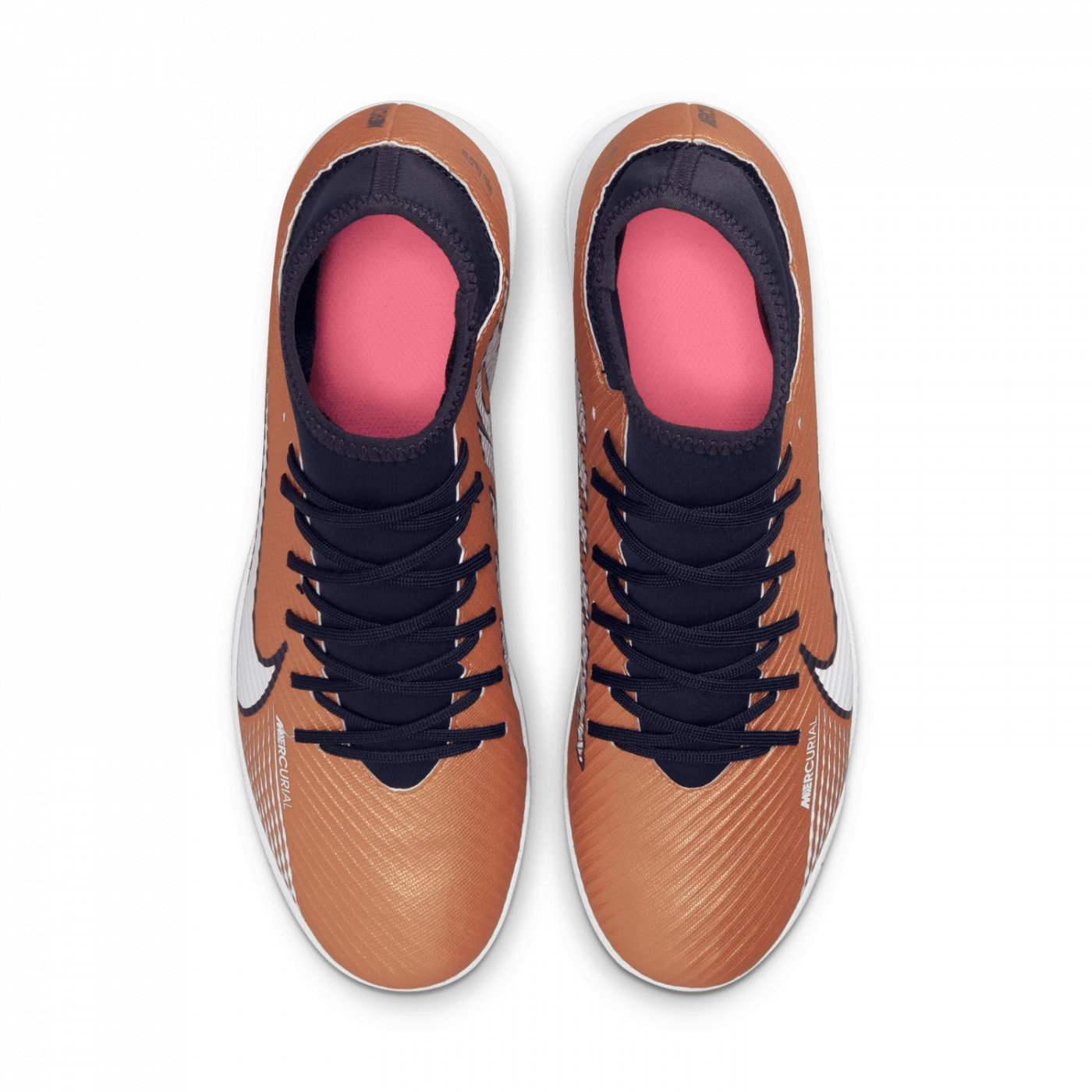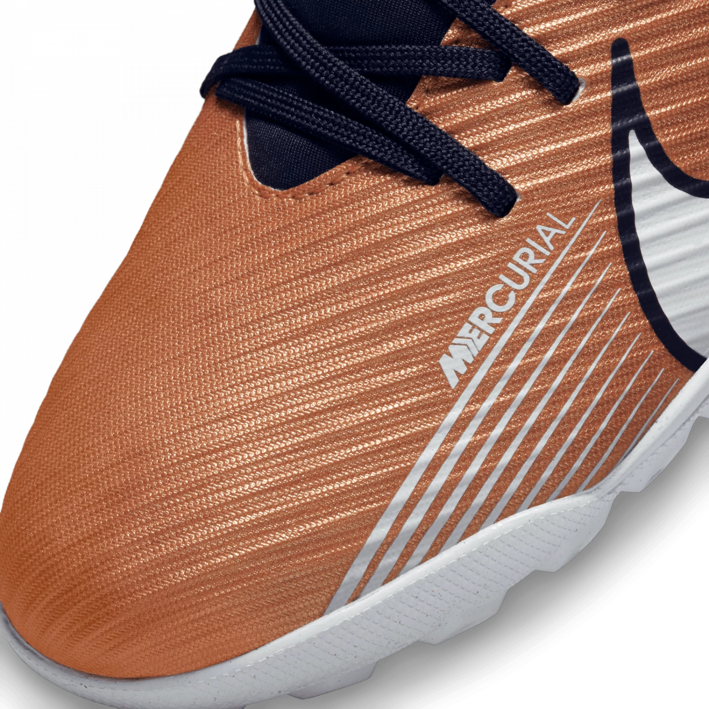 Along the sole plate, a unique color gradient recalls copper and its energy-conducting properties. We’ve juxtaposed a sophisticated Space Dust hue around the studs with pops of white and contrasting copper, as well as an extra vibrant pink hue. The upper is in metallic Liquid Chrome.
