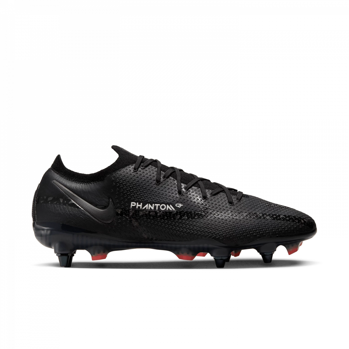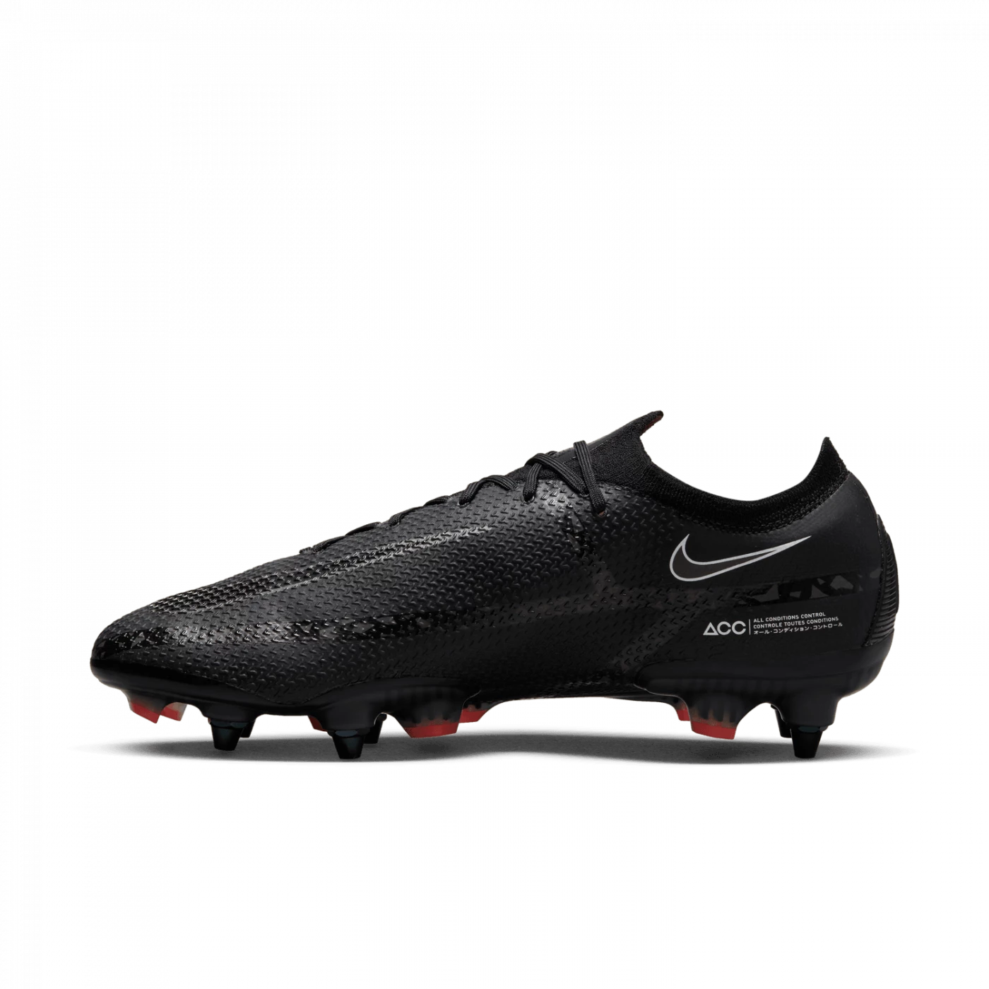 Taking a cue from Phantom GT, the Nike Phantom GT2 Elite SG-Pro AC shoe combines updated design and raised pattern for an ideal rotation for control of the ball’s trajectory. The asymmetrical lacing creates a clean hitting zone perfect for dribbling, passing and precise shots. The metal studs with screw attachment are designed for ideal power on wet fields, while the Anti-Clog Traction technology on the sole plate avoids the accumulation of mud.