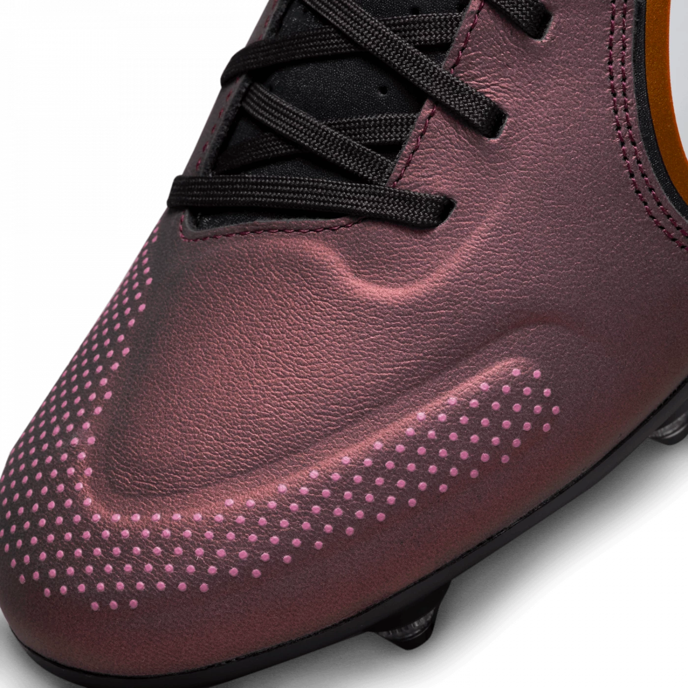 Celebrate the largest football tournament in the world with a design that harks back to the science of connection and gravity inspired by the event. The unique carbon fiber chrome plate completes an incredible futuristic look designed for the feet of the greatest footballers in the world. In what we can consider the lightest Tiempo ever, the upper with raised texture and soft foam pod is designed for precision dribbling, passing and shooting, while the studs at the bottom provide traction for quick changes of direction and sudden stops.
