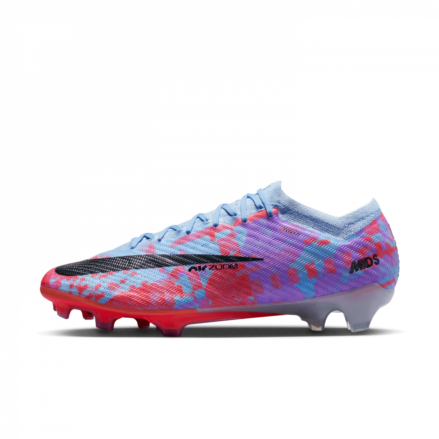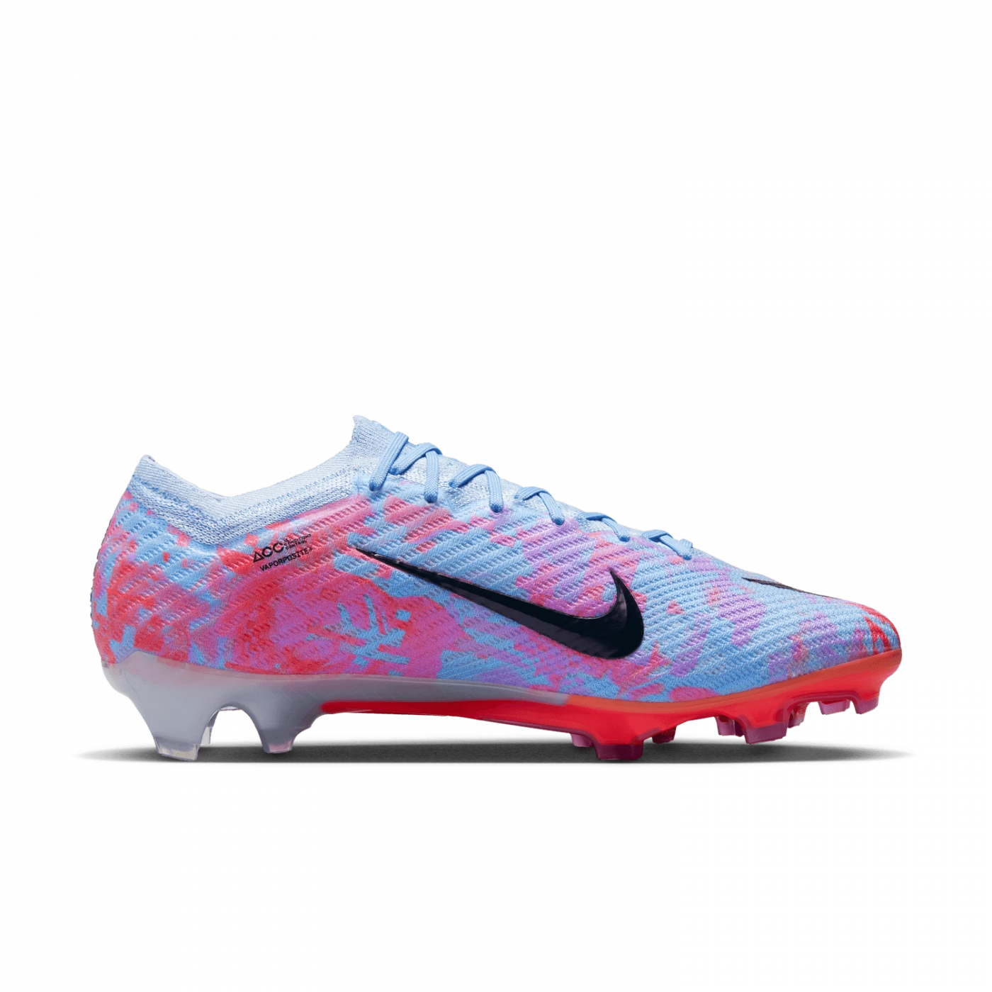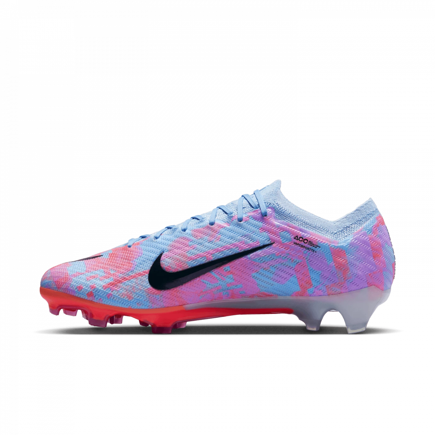 The upper is made from Vaporposite+, which combines a grippy, grid mesh with a premium material for optimal ball control at high speeds. The material provides a tactile feel across the surface of the upper. It’s soft but stable, and wraps tightly around your foot, giving you a more natural on-ball feel when dribbling, passing or scoring.
