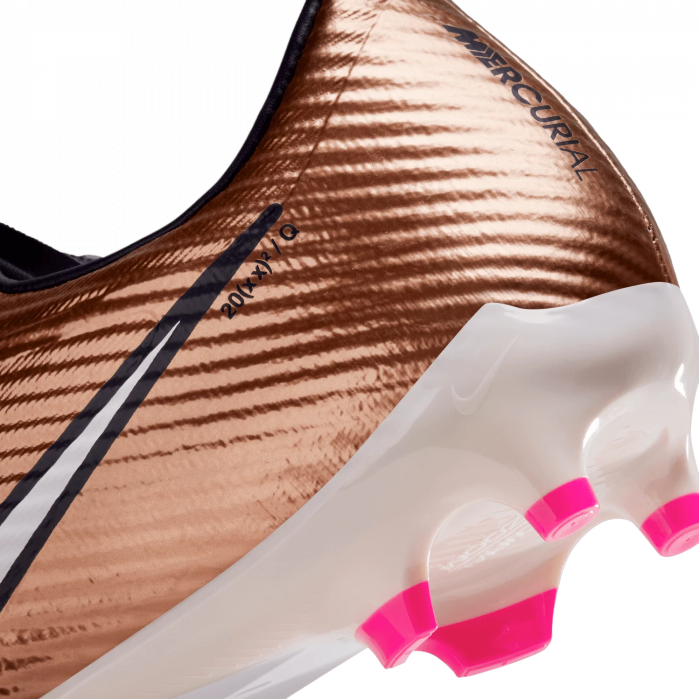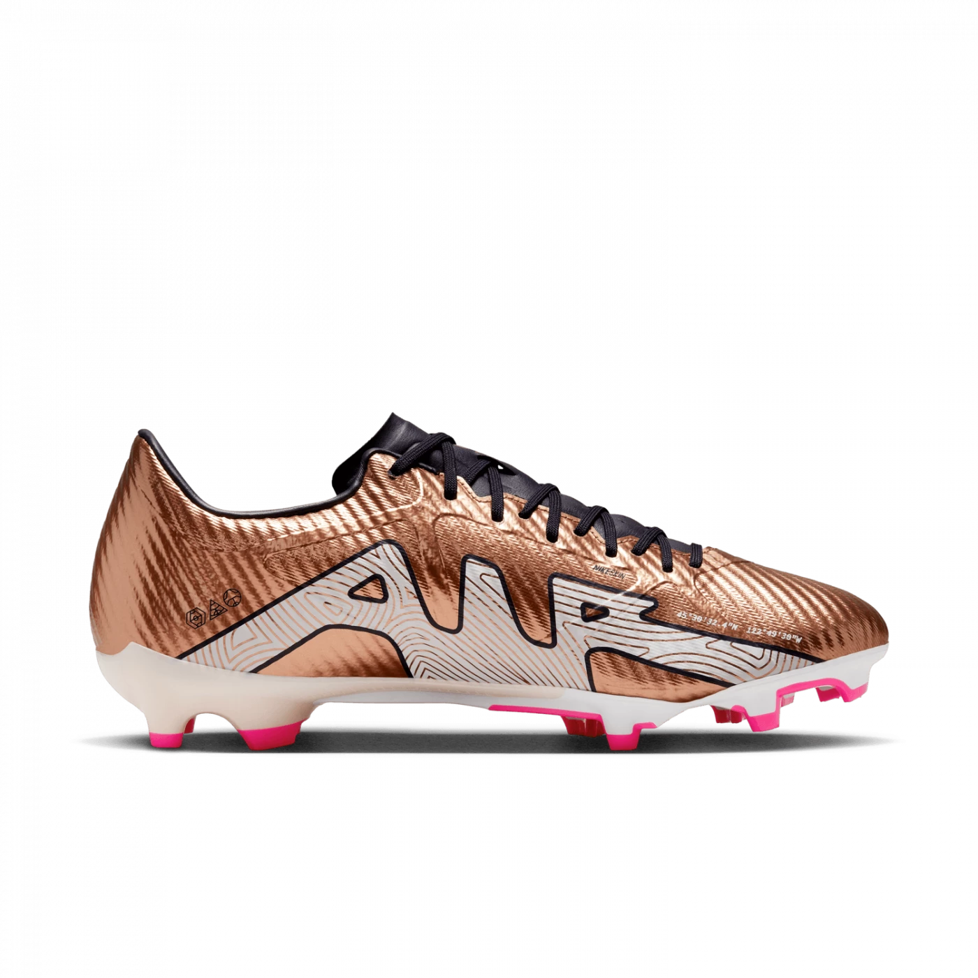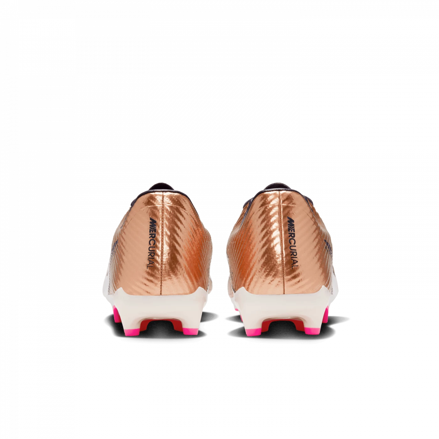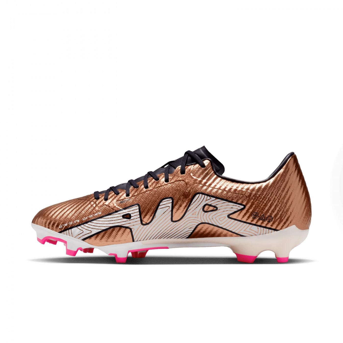 Along the sole plate, a unique color gradient recalls copper and its energy-conducting properties. We’ve juxtaposed a sophisticated Space Dust hue around the studs with pops of white and contrasting copper, as well as an extra vibrant pink hue. The upper is in metallic Liquid Chrome.