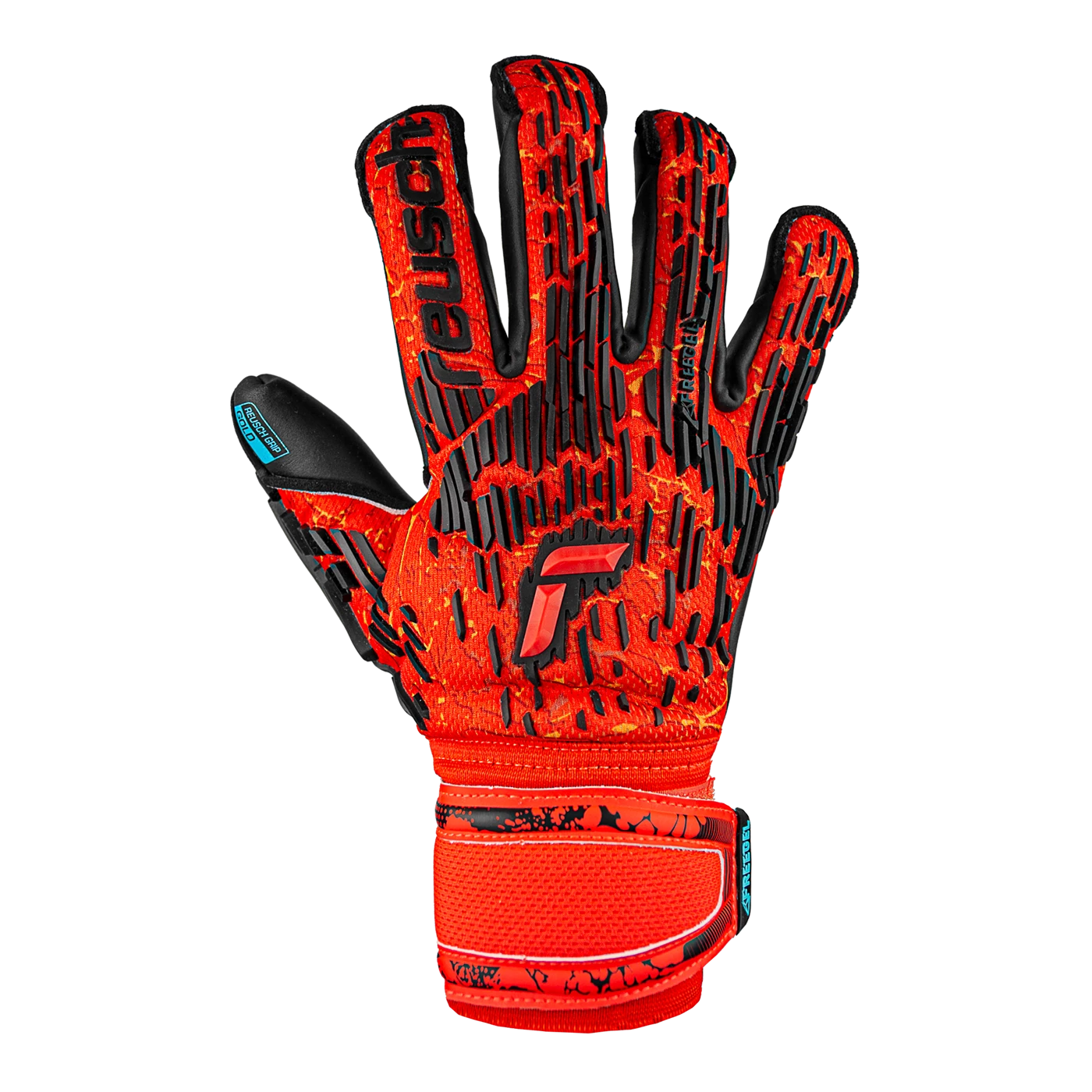 The new Evolution Cut Style from last season comes this year with the flashy electric red design. It is the perfect match for all keepers searching for maximum wearing comfort, stability and grip. The Attrakt Gold Evolution Cut with its high-volume punching zone provides extra cushioning and a soft touch. The German-made Grip Gold latex including the highest percentage of natural latex, boosting the overall grip properties and guarantees professional grip and reliable durability. The new redesigned Freegel silicone application on the backhand with hundreds of separate small rubber elements provides high flexibility and lightness and at the same time the needed support and stability for catching and punching.