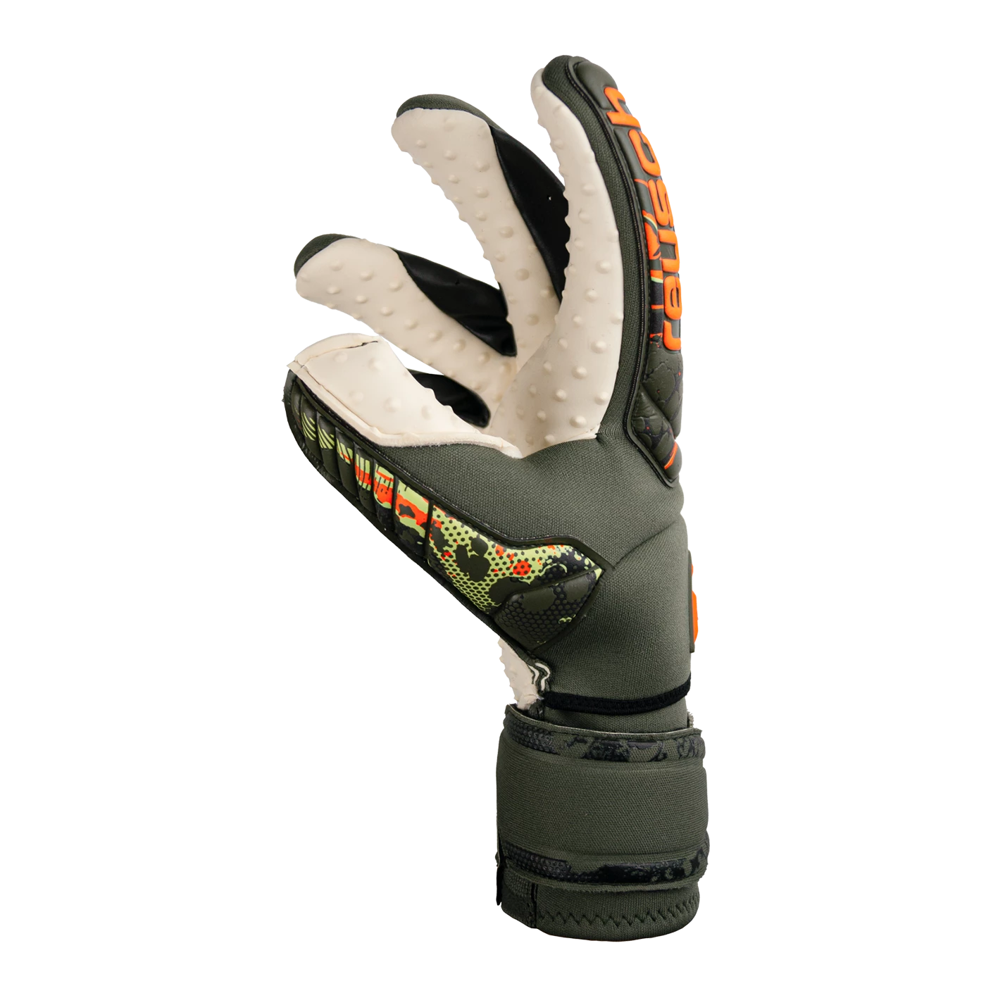 The pure explosion of energy for Poland Keeper Wojciech Szczesny for the World Cup 22. This glove guarantees even more pitch support. The Speedbump™ Technology with three-dimensional spikes on the surface of the professional match latex increases the friction between the glove and the ball for maximum grip and control. Due to the Ortho-Tec spines reliable protection of all fingers is guaranteed. The extended grip zone with a bigger catching area is guaranteed for even more control.