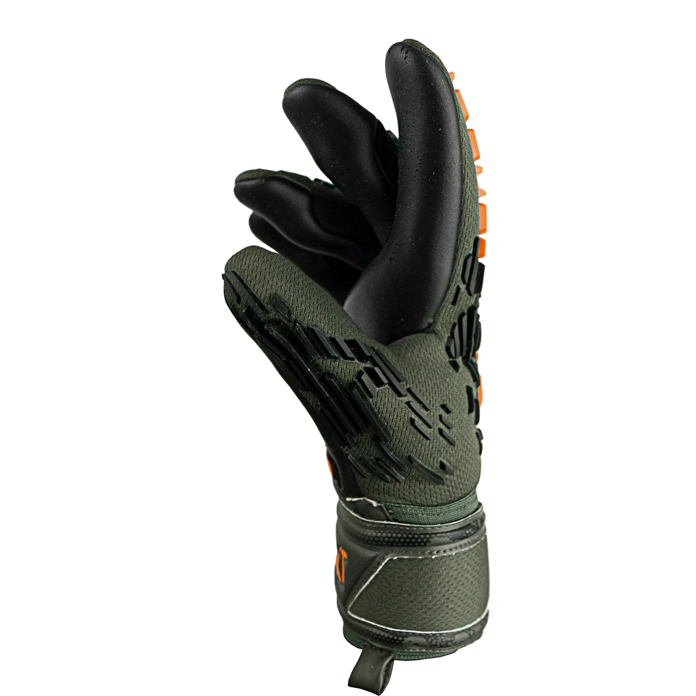 The Attrakt Freegel Silver Finger Support Junior in the World Cup design features the new redesigned Freegel silicone application on the backhand for high flexibility and lightness at the same time. The Finger Support protection on all five fingers offers reliable prevention of finger injuries. The glove is equipped with the high-volume Silver latex. Thanks to its significantly increased volume and softness this German-made latex guarantees outstanding impact absorption, good grip and reliable abrasion resistance.