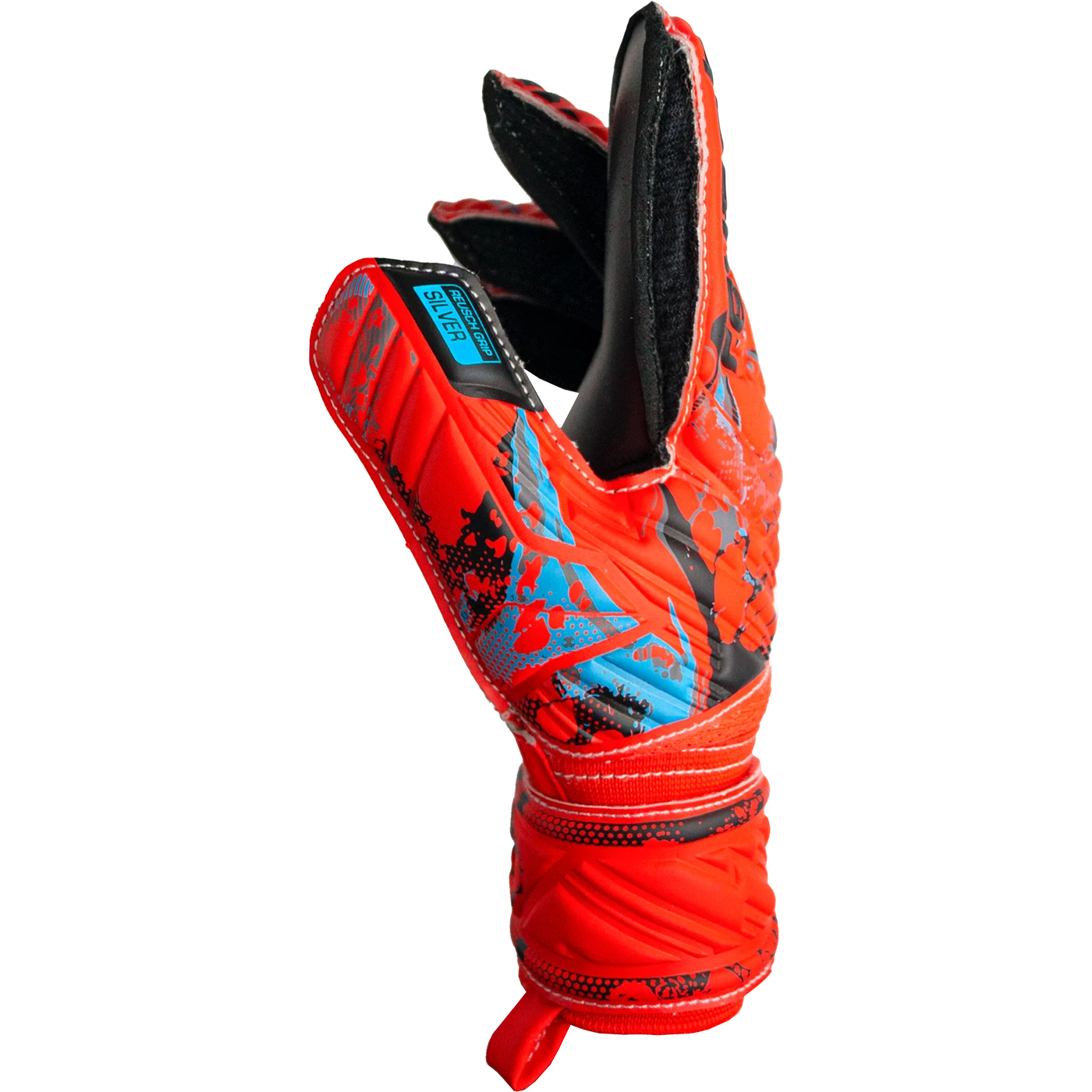 This junior glove features the German-made high-volume Reusch Grip Silver latex, which provides outstanding impact absorption, good grip and reliable abrasion resistance. An additional latex patch in the most stressed zones of the palm increases the abrasion resistance as well as further durability. A good breathability is guaranteed with soft airmesh material on the backhand and sidewalls.