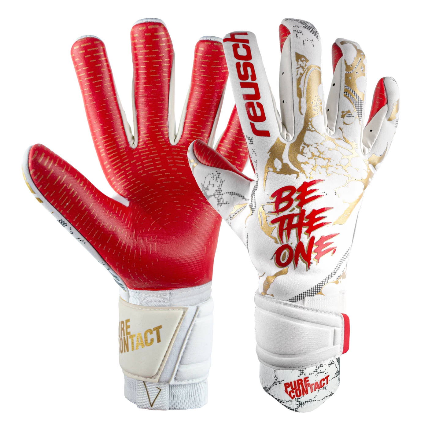 This Pure Contact model offers the special GluePrint technology. The technology is based on the Reusch Grip Gold X applying a special sticky print on the palm latex. Due to this the tackiness and grip get enhanced exactly in those zones where it is needed the most. The positioning of the ink follows a precise pattern that is designed to cover exactly those areas of the palm that get in most contact with the ball when catching. The FreeFlex backhand is made of neoprene with small and thin silicone applications to keep it highly flexible.